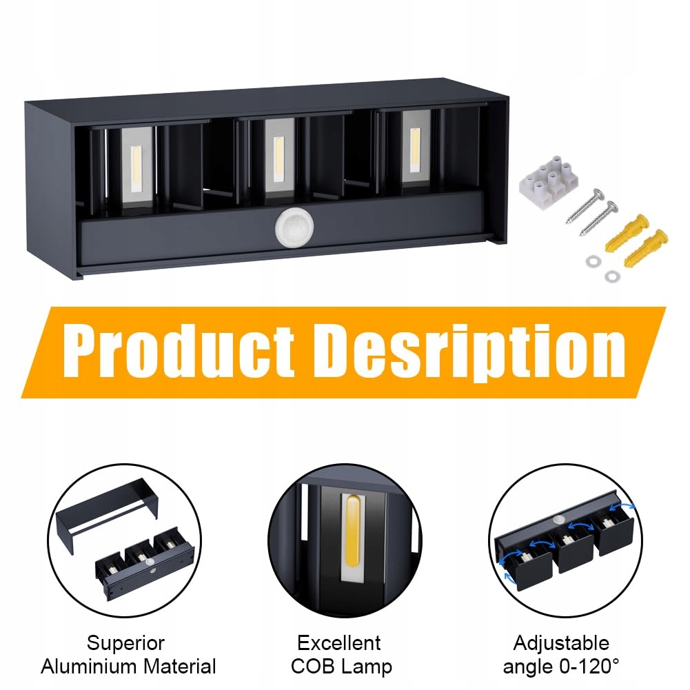 3.【Wysoka jakość】LED lampa ścienna z czujnikiem ruchu wykonana jest z wysokiej jakości odlewu aluminiowego. Obudowa lampy jest solidna i cechuje się doskonałą odpornością na nacisk i korozję. Lampa zewnętrzna z czujnikiem ruchu ma nowoczesny design, prosty i elegancki.