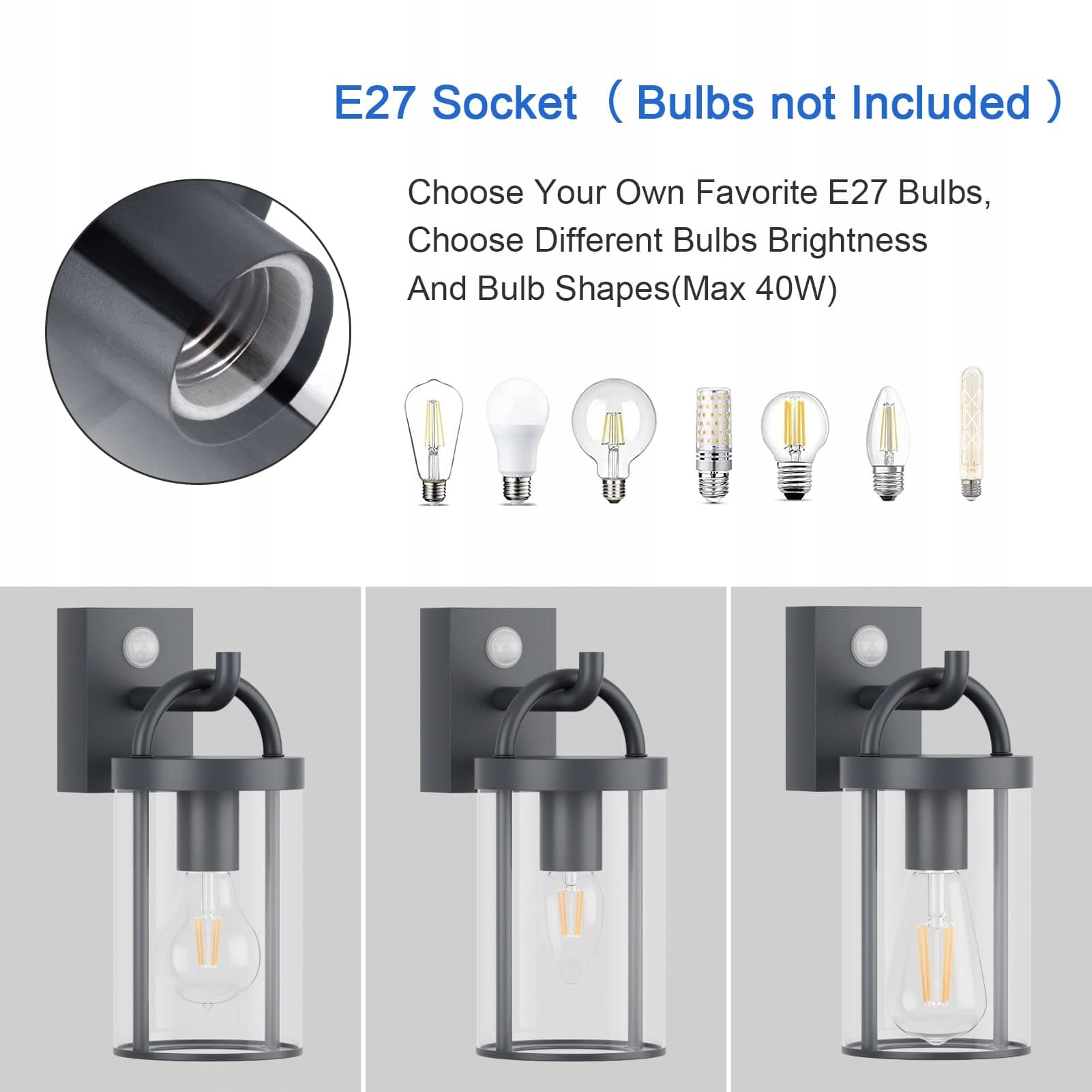KLIGHTEN Lampa Zewnętrzna Vintage z Czujnikiem Ruchu E27 IP44 40W Max