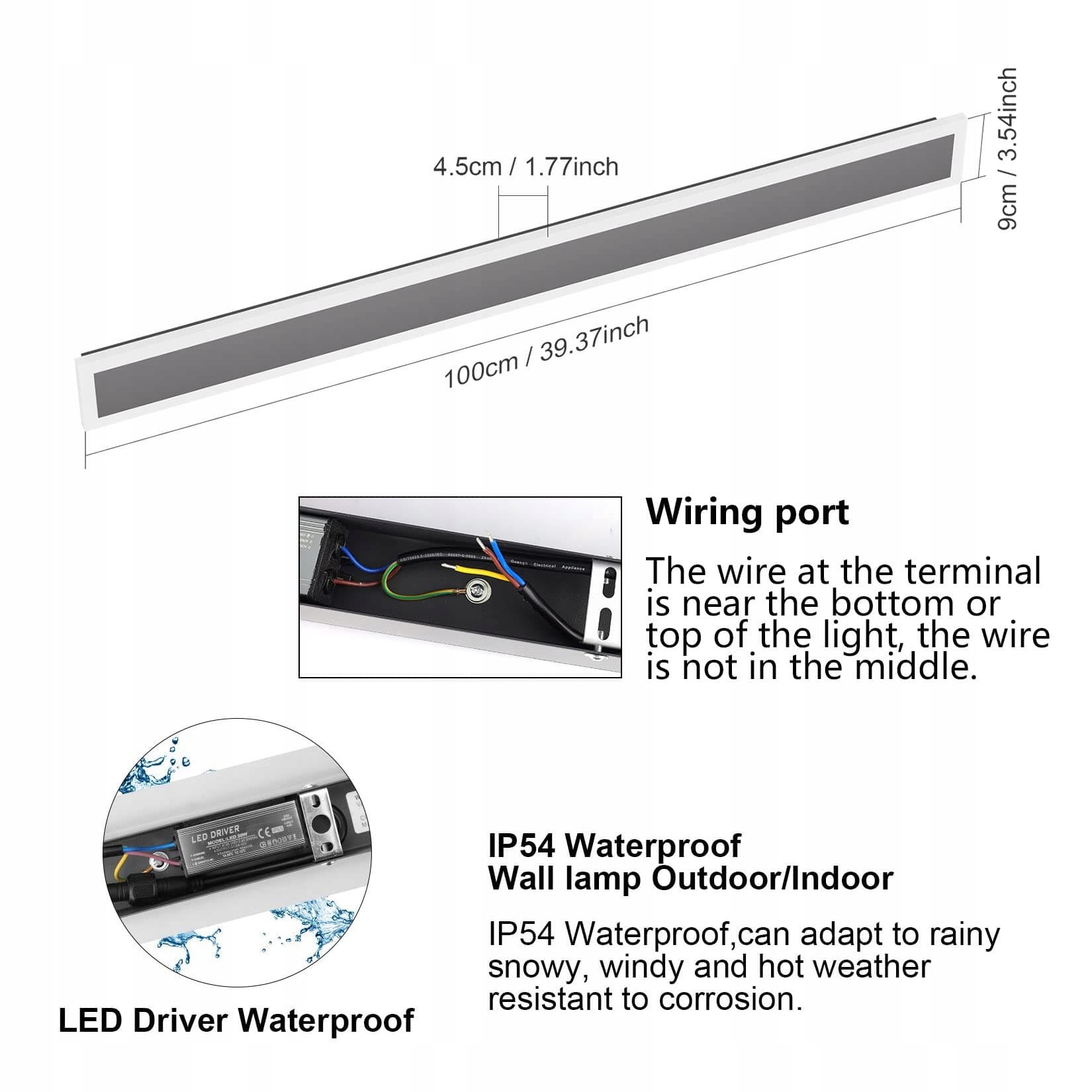 [Wodoodporność IP54]: Ciemnoszara Długa Zewnętrzna Lampa Ścienna, Klasa Ochrony IP54, Lampa Ścienna jest Przystosowana do Deszczu i Śniegu, Może Być Używana w Każdym Zewnętrznym lub Wewnętrznym Obszarze, Wysokiej Jakości Obudowa z Żelaza, Źródło Światła LED i Sterownik są Wodoodporne i Przeszły Surowe Testy, aby Zapewnić, że są Wodoodporne, Możesz Używać Tego Kinkietu do Oświetlenia Na Zewnątrz i Wewnątrz z Pewnością i Bezpieczeństwem.