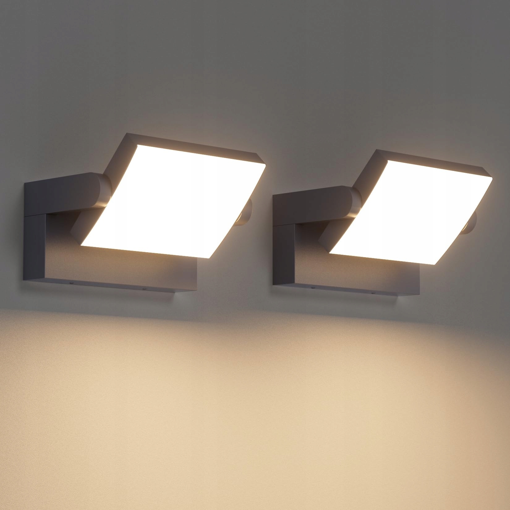Klighten 2 sztuki kinkietów 24W na zewnątrz i wewnątrz, IP65 nowoczesna lampa ścienna z obrotowym panelem LED, lampa zewnętrzna do ogrodu, wejścia, tarasu, 1500 lumenów, antracyt, ciepła biel 3000K