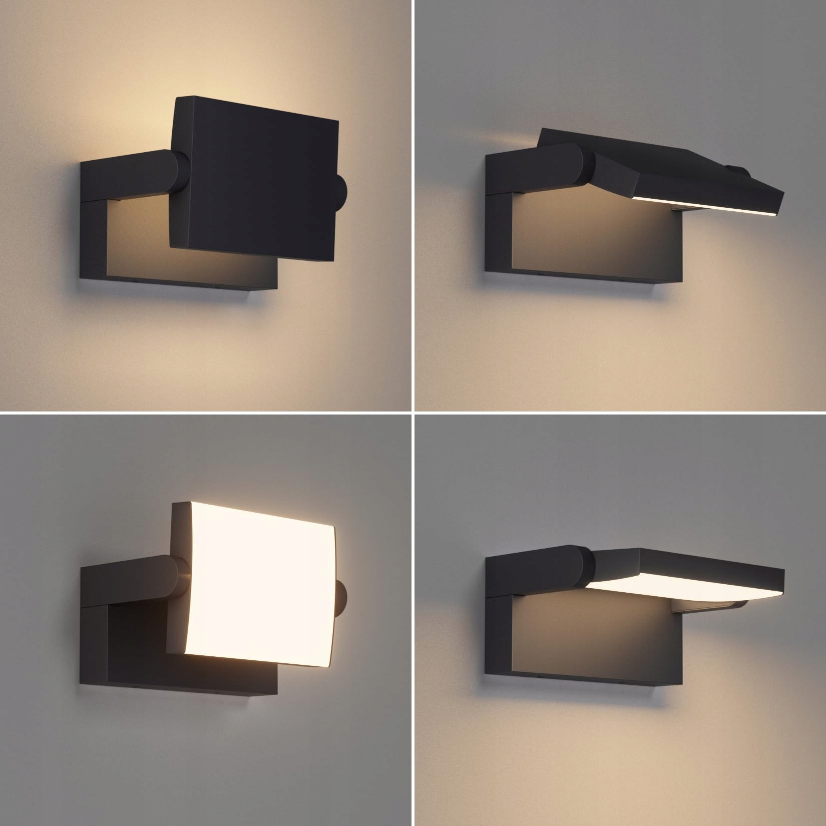 Klighten 2 sztuki kinkietów 24W na zewnątrz i wewnątrz, IP65 nowoczesna lampa ścienna z obrotowym panelem LED, lampa zewnętrzna do ogrodu, wejścia, tarasu, 1500 lumenów, czarna, ciepła biel 3000K