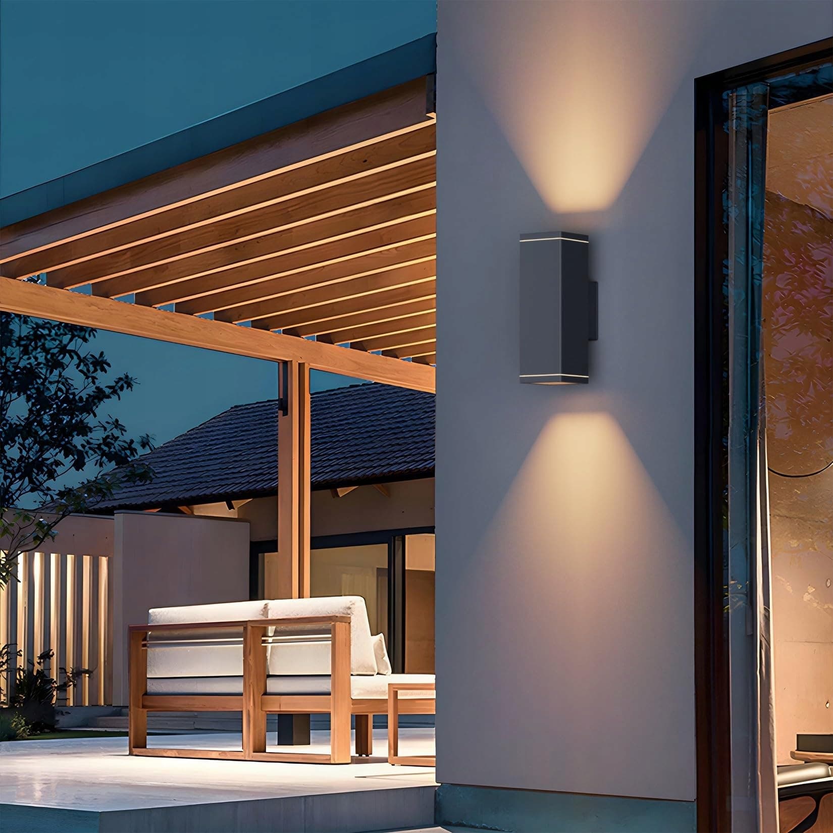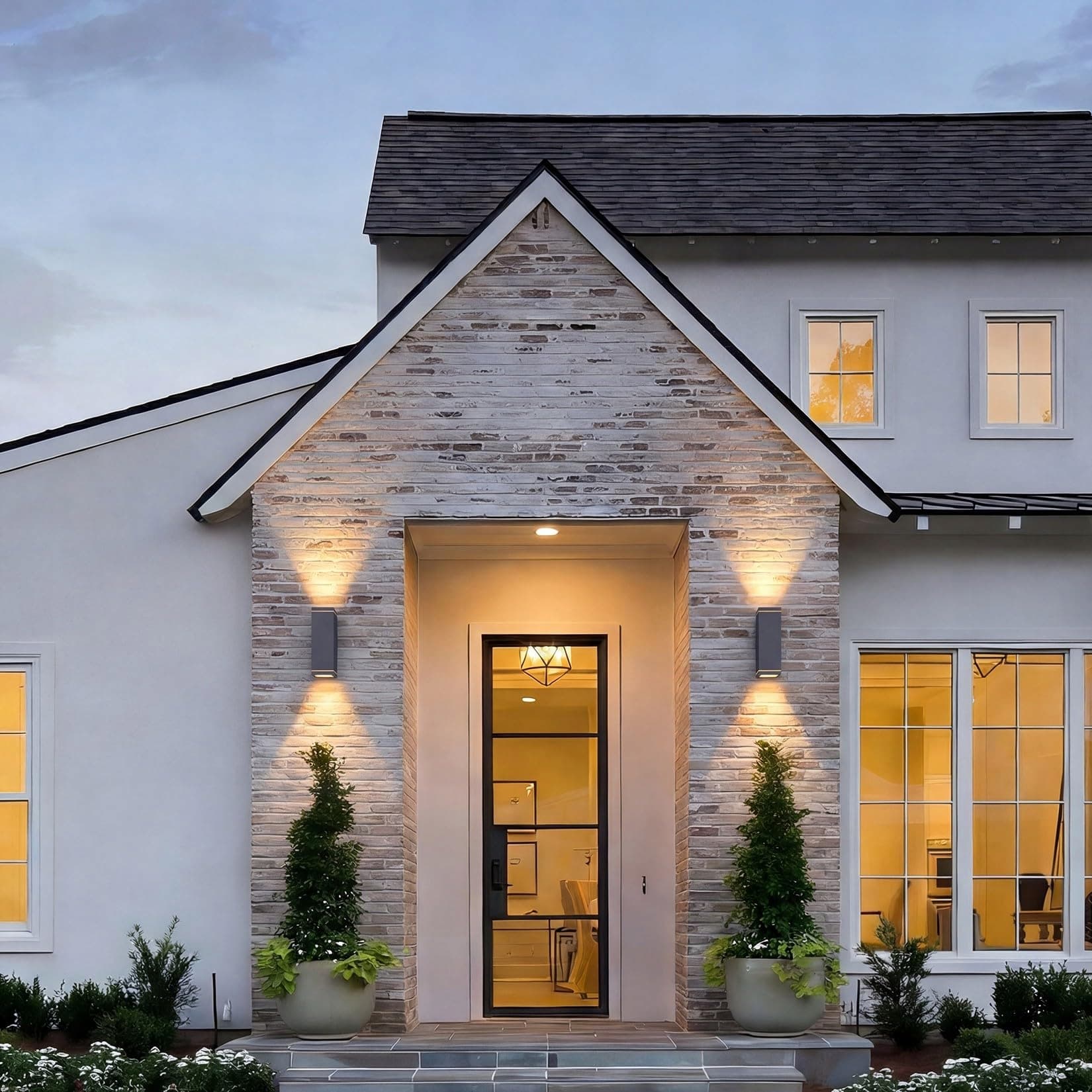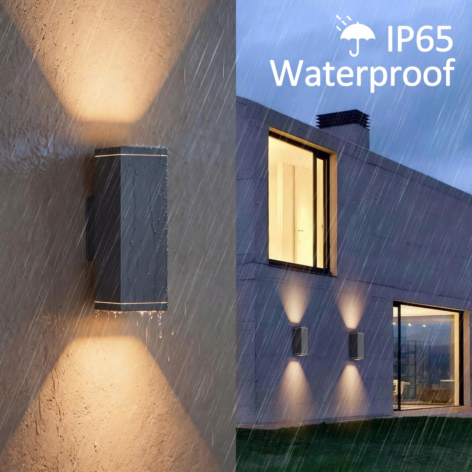 【Nowoczesny i minimalistyczny design】Ta zewnętrzna lampa ścienna o prostym wzornictwie daje eleganckie i nowoczesne wrażenie, oświetlenie góra-dół, pasuje do dekoracji oświetlenia zewnętrznego i wewnętrznego, sprawiając, że Twój dom wygląda piękniej i wyjątkowo w nocy.