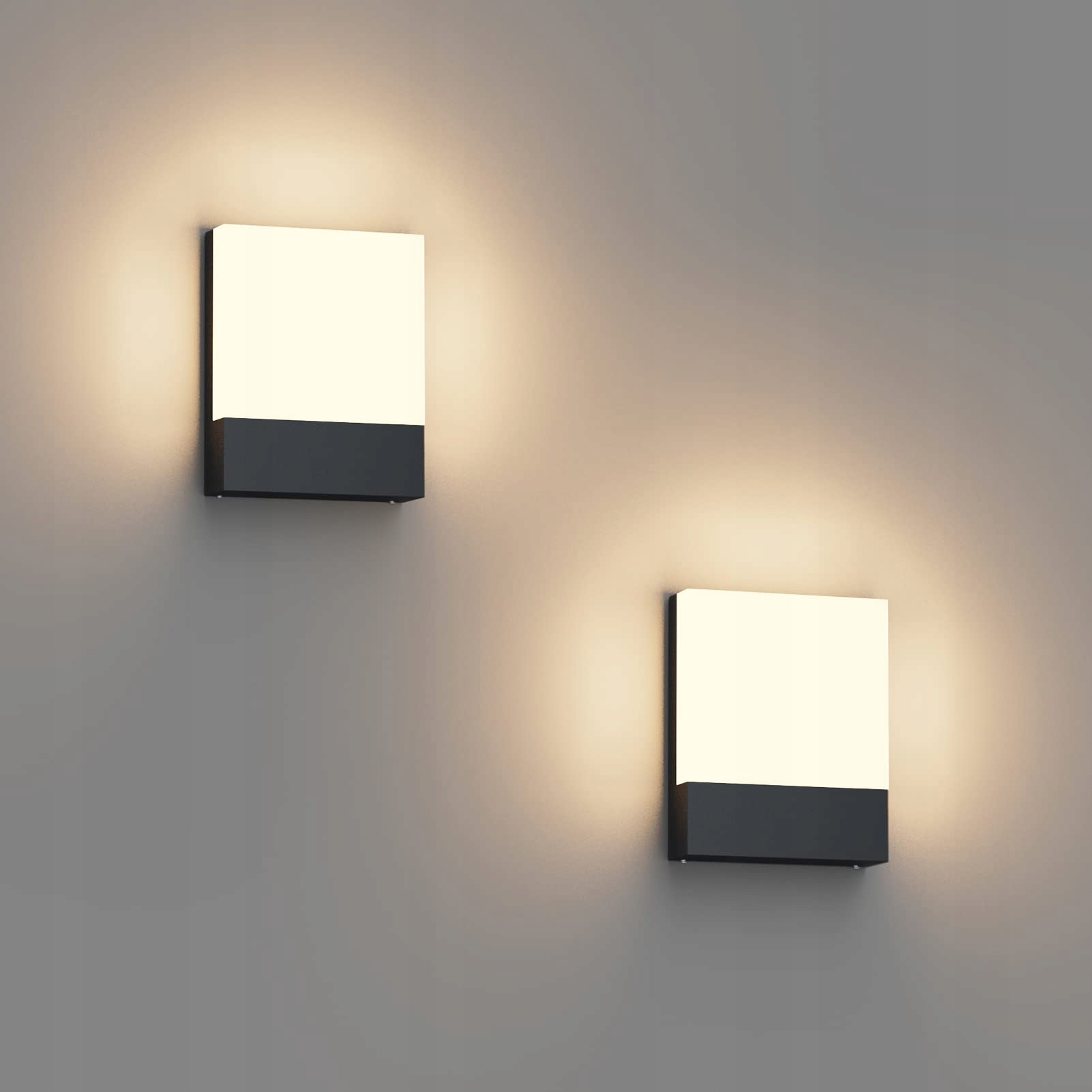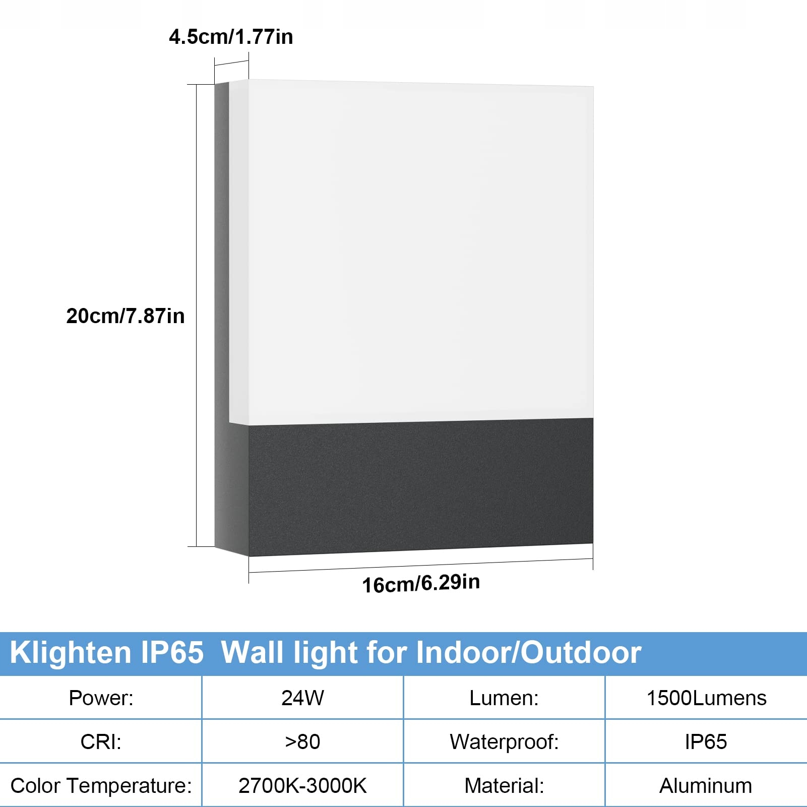 Klighten 2 sztuki 24W LED zewnętrzna lampa ścienna, wodoodporna IP65 lampy ścienne na zewnątrz/wewnątrz, aluminium nowoczesna lampa zewnętrzna lampa ścienna na taras ogród, 1500 lumenów, antracyt, ciepła biel 2700-3000K