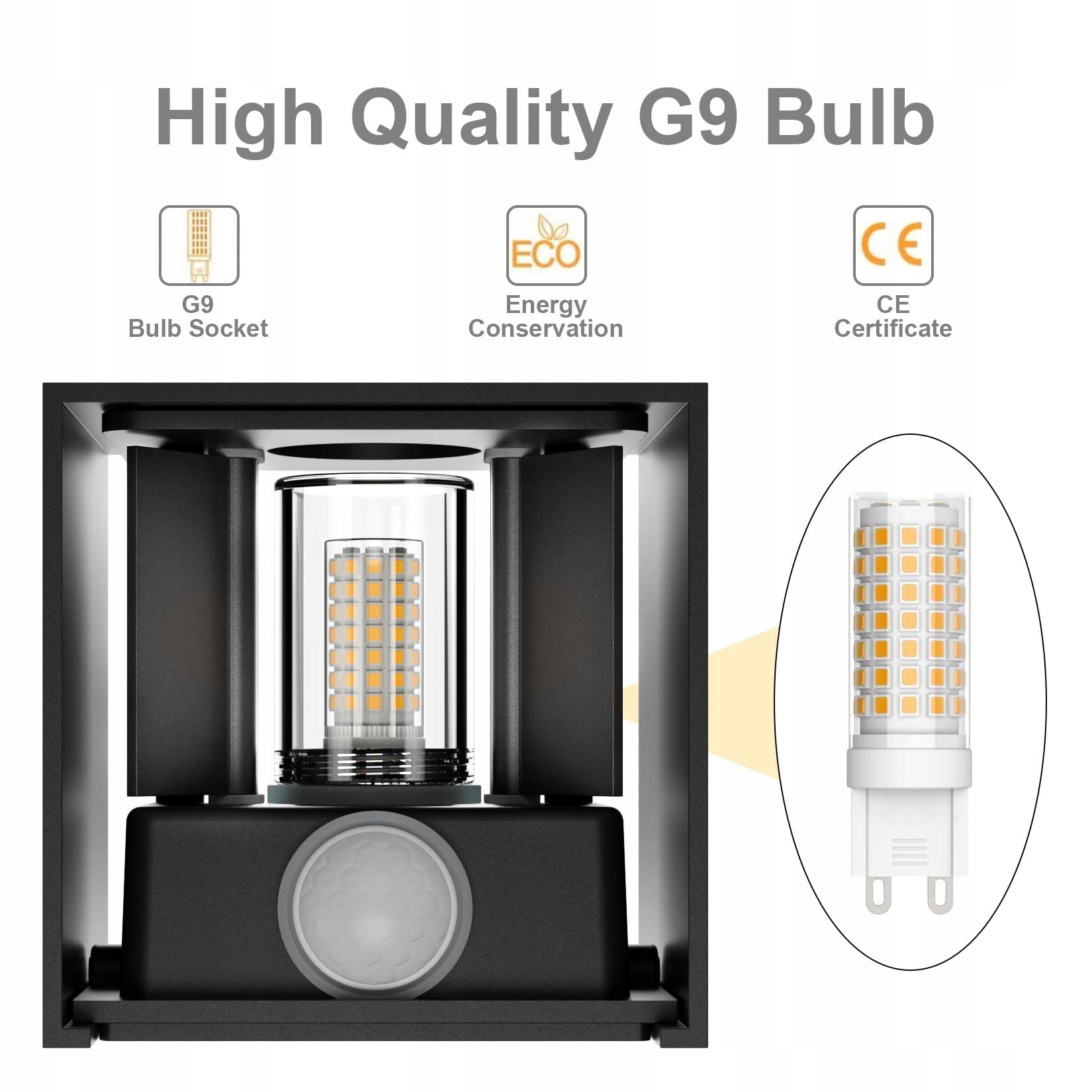 Klighten 2 sztuki LED kinkiet z czujnikiem ruchu do wnętrz/na zewnątrz 3000K kinkiet z czujnikiem ruchu regulowany kąt świecenia, z wymienną lampą LED G9 (czarny)