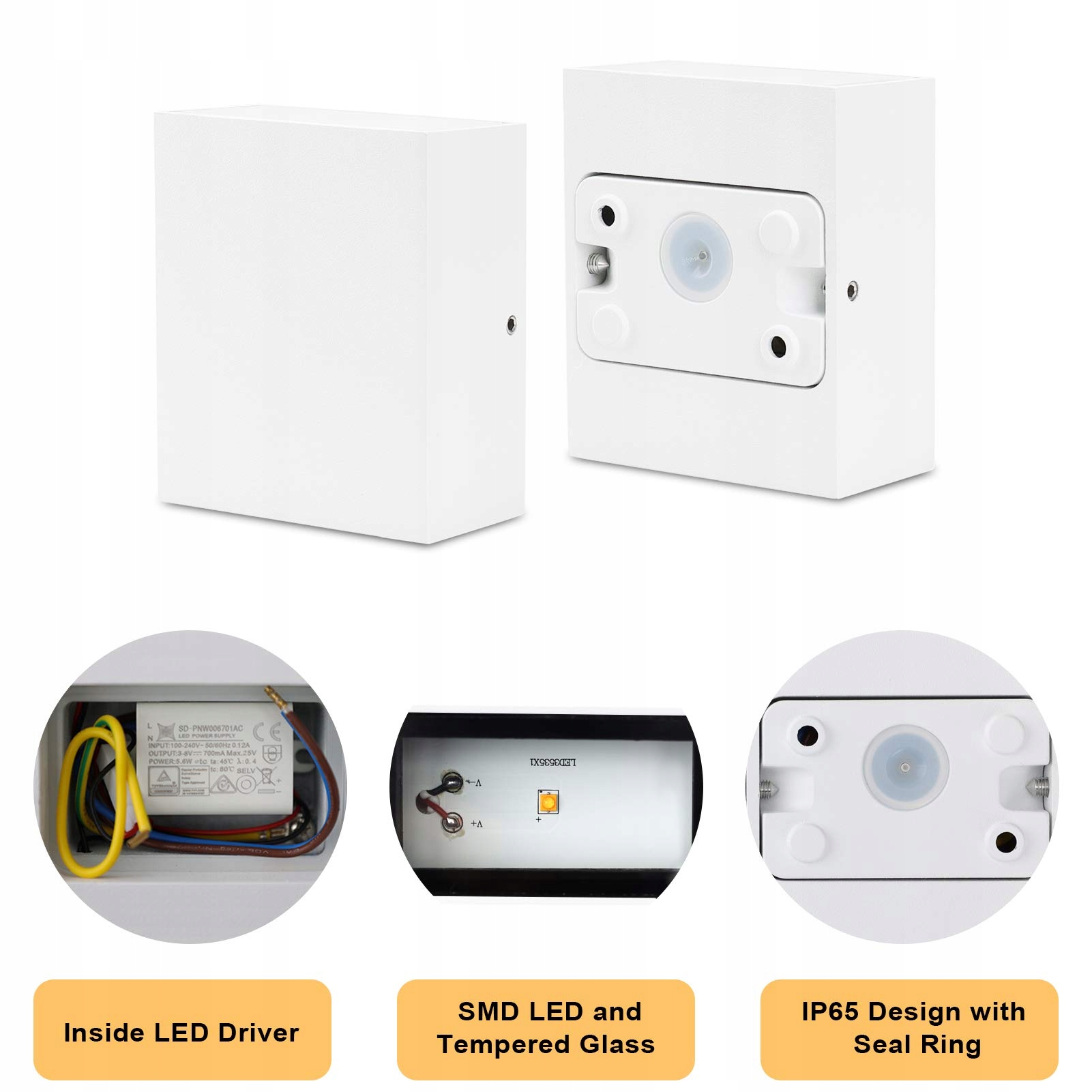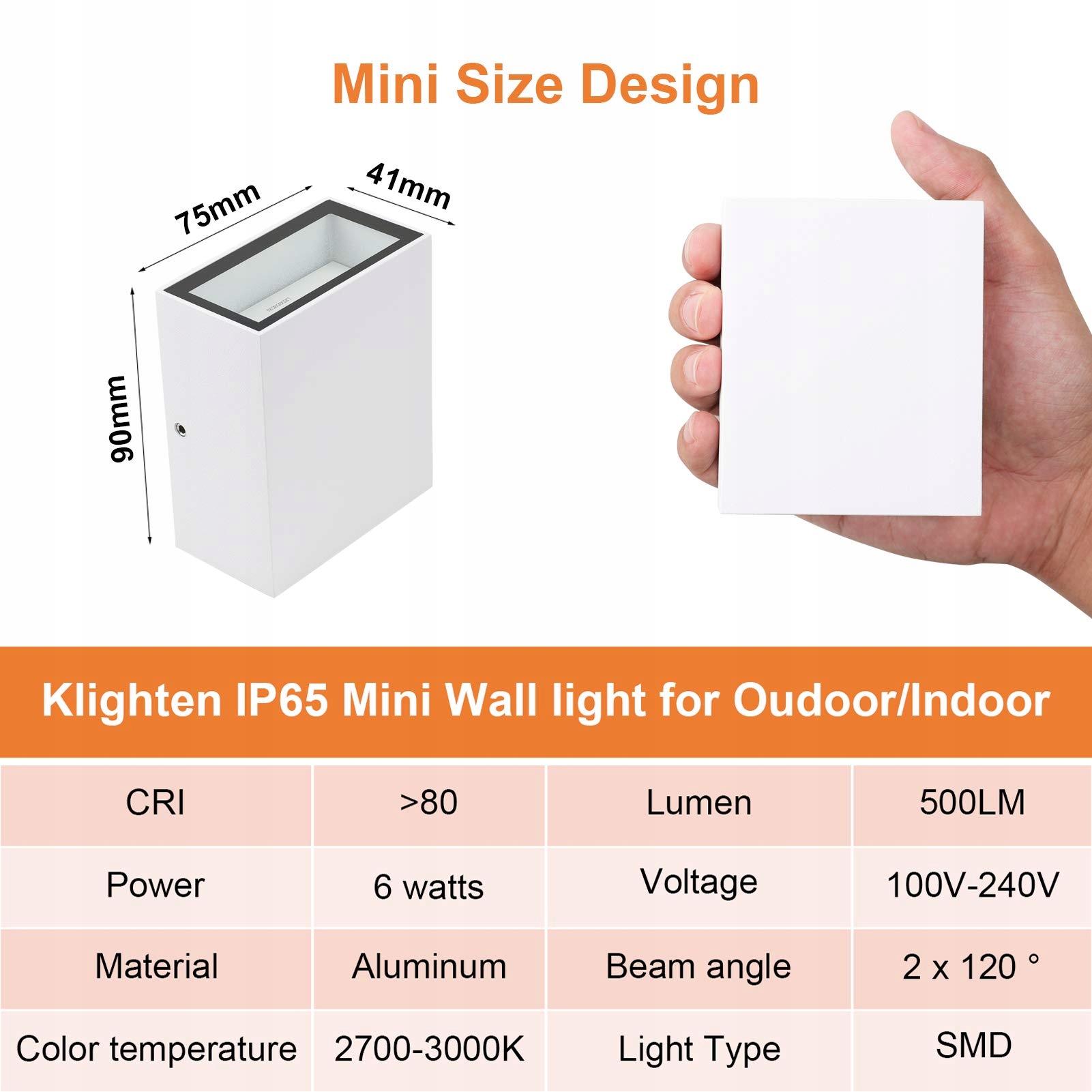 Klighten 4 sztuki 7W LED kinkiety ścienne na zewnątrz i do wnętrz, wodoodporne IP65 lampa ścienna góra-dół, nowoczesna lampa ścienna z aluminium na schody, salon, sypialnię, taras, ciepła biel 3000K, biała