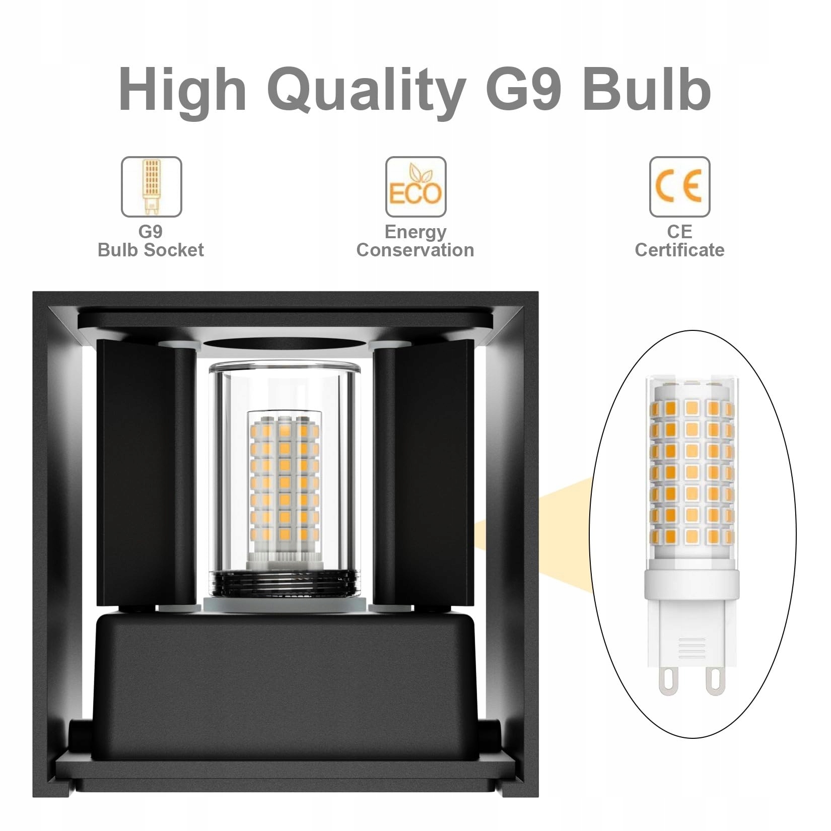 3.【Rozmiar elementu】 Korpus kinkietu LED: szerokość 100 mm x głębokość 100 mm x wysokość 100 mm. Rodzaj żarówki: 9W G9 LED oświetla 650LM (można wymienić samodzielnie).
