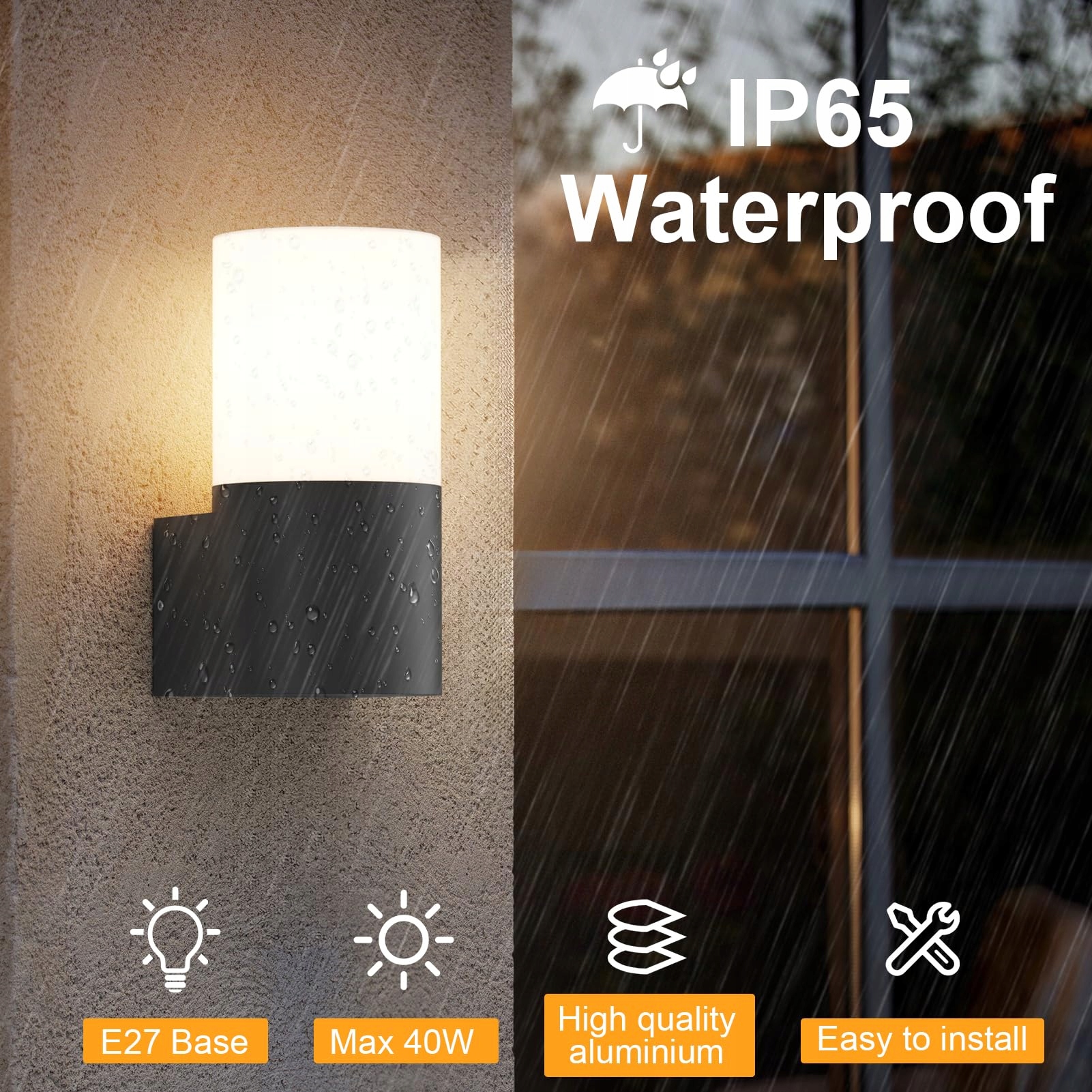 【Gniazdo E27】: Kinkiet zewnętrzny Klighten jest odpowiedni do żarówek E27, maksymalna moc 40W (maks. rozmiar żarówki 12,5 cm * min 6 cm) (żarówka nie jest dołączona), możesz wybrać swoją ulubioną ciepłą lub zimną żarówkę do instalacji, aby Twój dom rozbłysnął pięknym światłem.