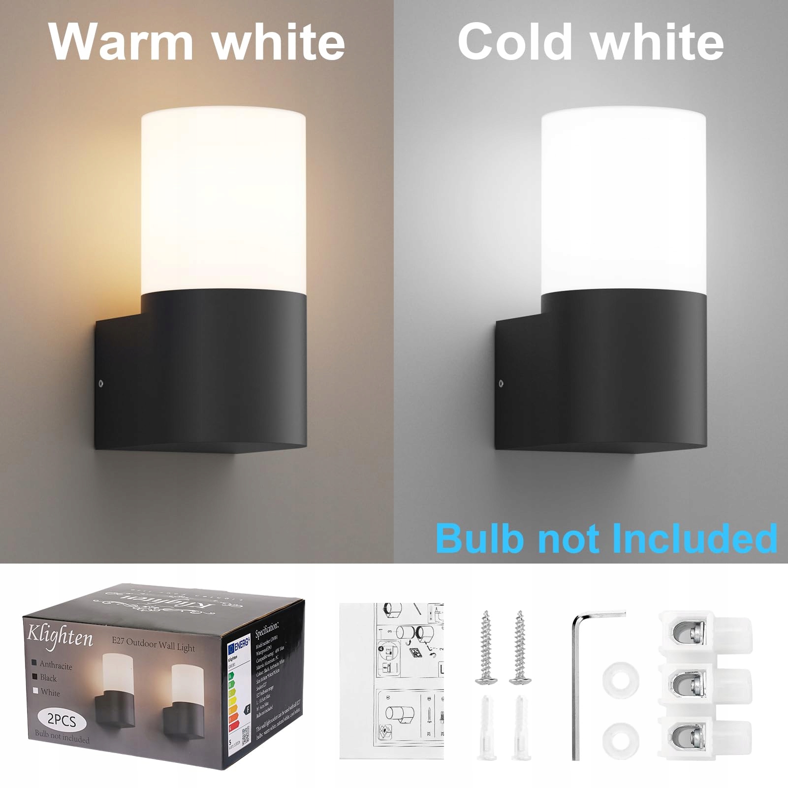 KLIGHTEN Zewnetrzne Lampy Scienne E27 IP65 Czarny Bez Zarowek 2 Sztuki | Premium Supply