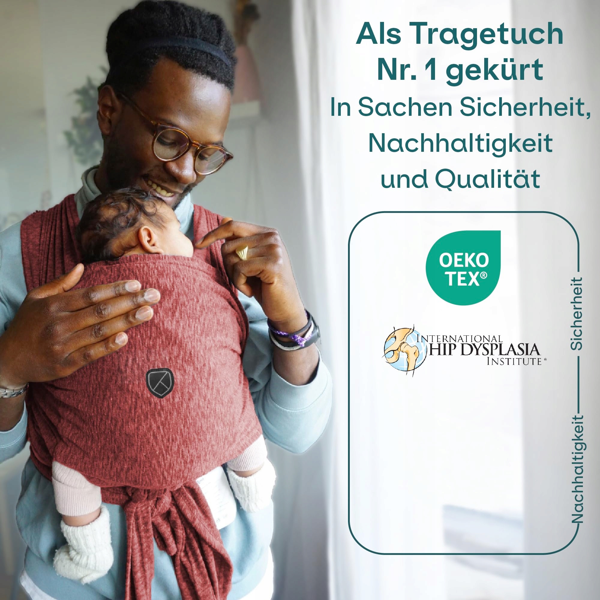 NAJŁATWIEJSZA DO ZAŁOŻENIA: Jak T-shirt, chusta szybko się zakłada – a dzięki dwóm regulowanym paskom materiałowym łatwo jest ją idealnie dopasować! Dodatkowo paski są krótsze niż w tradycyjnych chustach, dzięki czemu żaden element nie ciągnie po ziemi. To sprawia, że jesteśmy prostą i czystą pomocą do noszenia dla twojego dziecka!