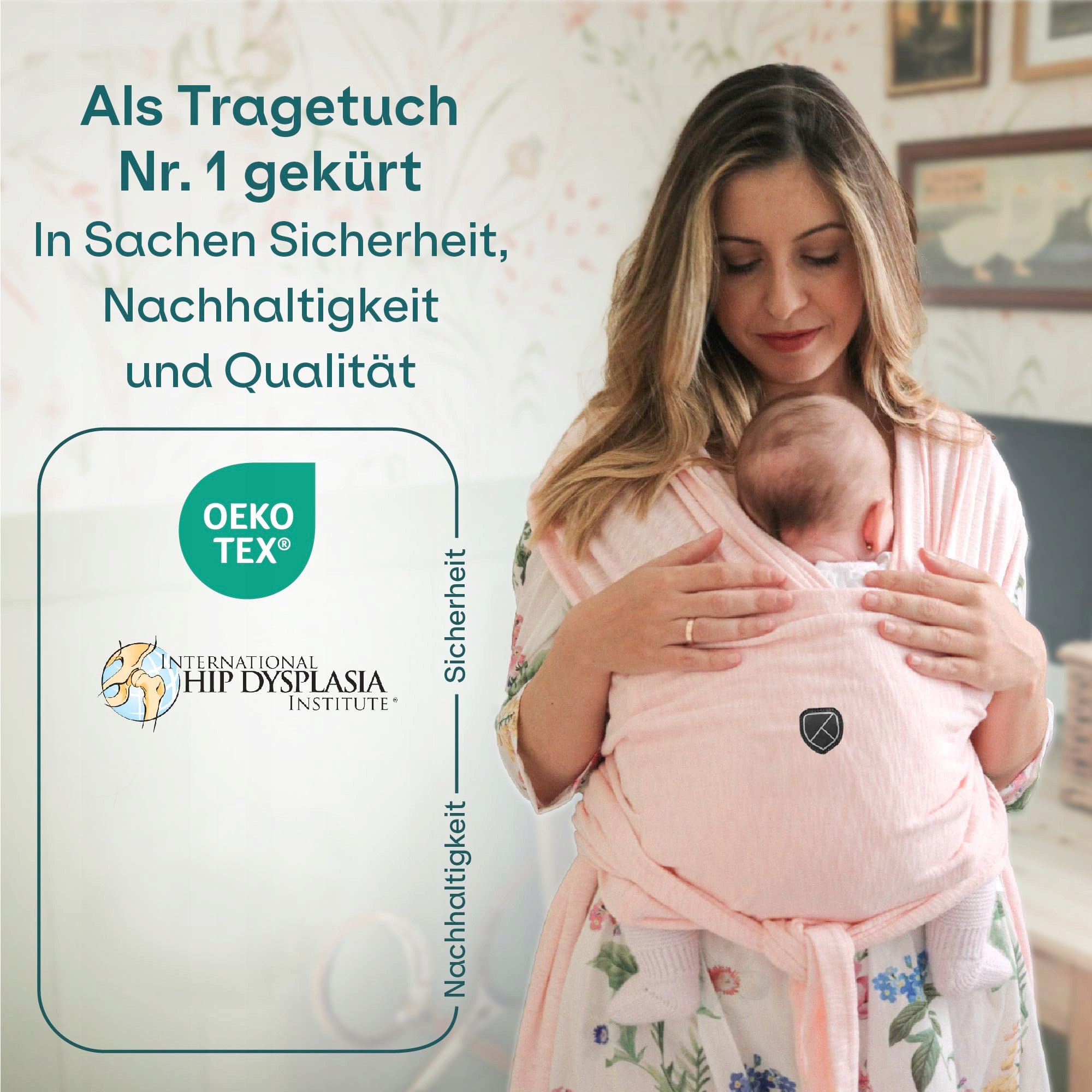 CERTYFIKAT IHDI: Certyfikowana jako ergonomiczne wsparcie dla prawidłowego rozwoju bioder u dziecka oraz w celu zapobiegania dysplazji.