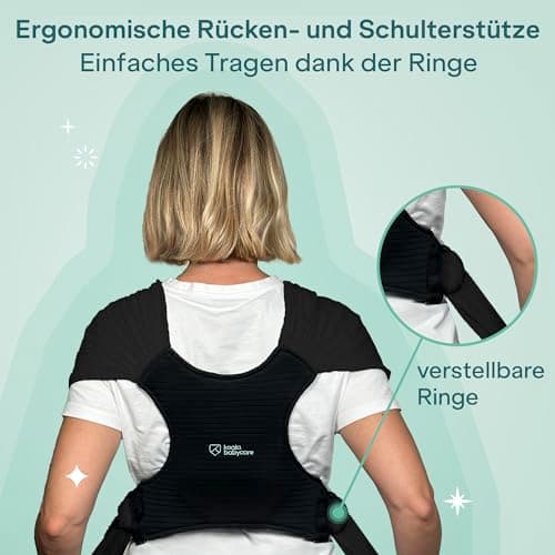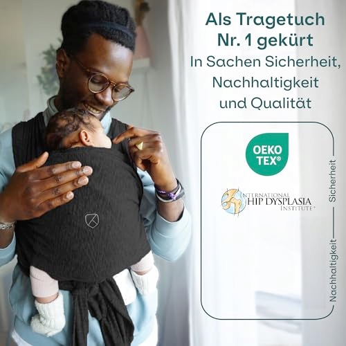NAJŁATWIEJ ZAŁOŻYĆ: Jak T-shirt, chusta szybko się zakłada – a dzięki dwóm regulowanym paskom materiałowym łatwo jest ją idealnie dopasować! Dodatkowo paski są krótsze niż w tradycyjnych chustach, więc żaden element nie ciągnie po ziemi. To sprawia, że jesteśmy prostą i czystą pomocą do noszenia dla twojego dziecka!