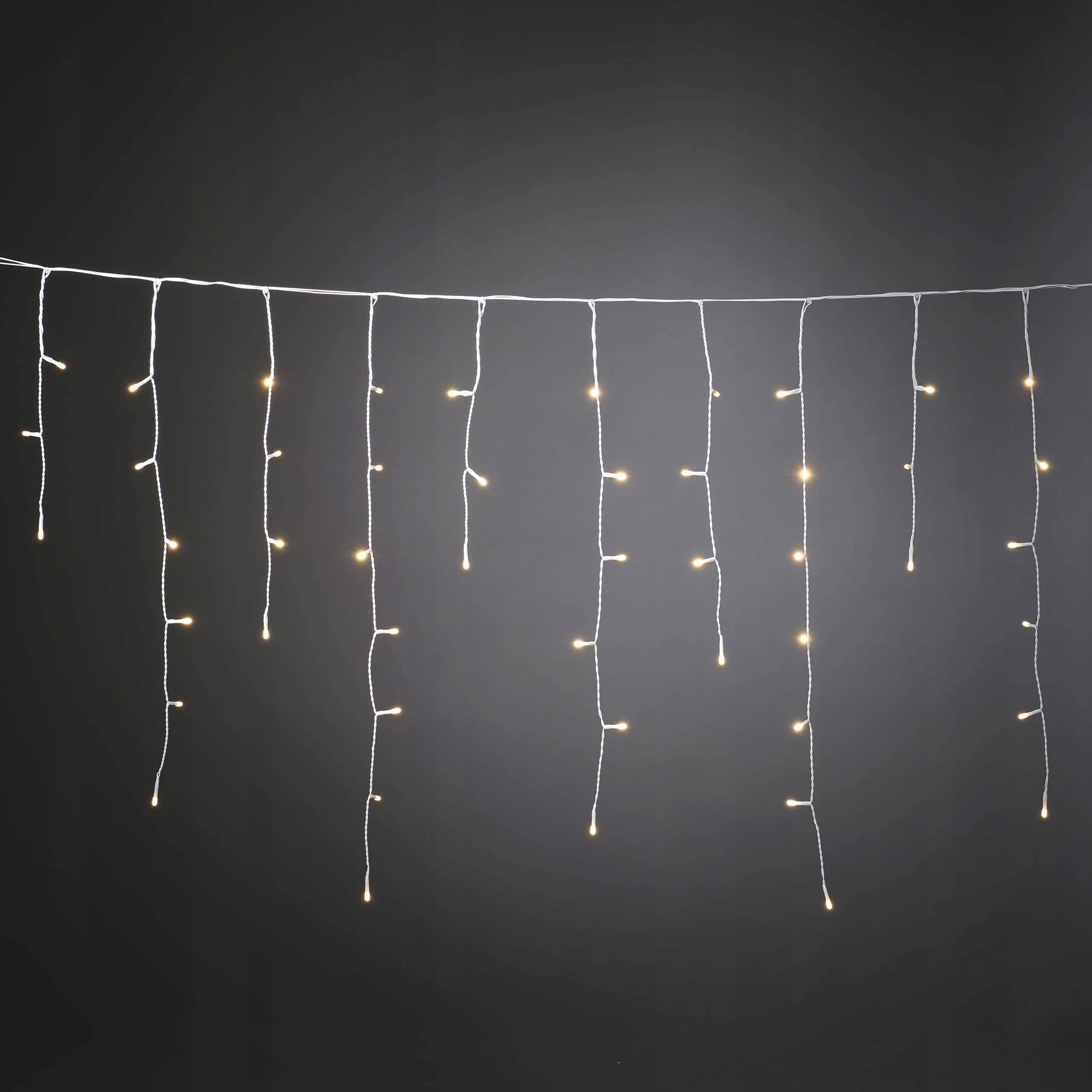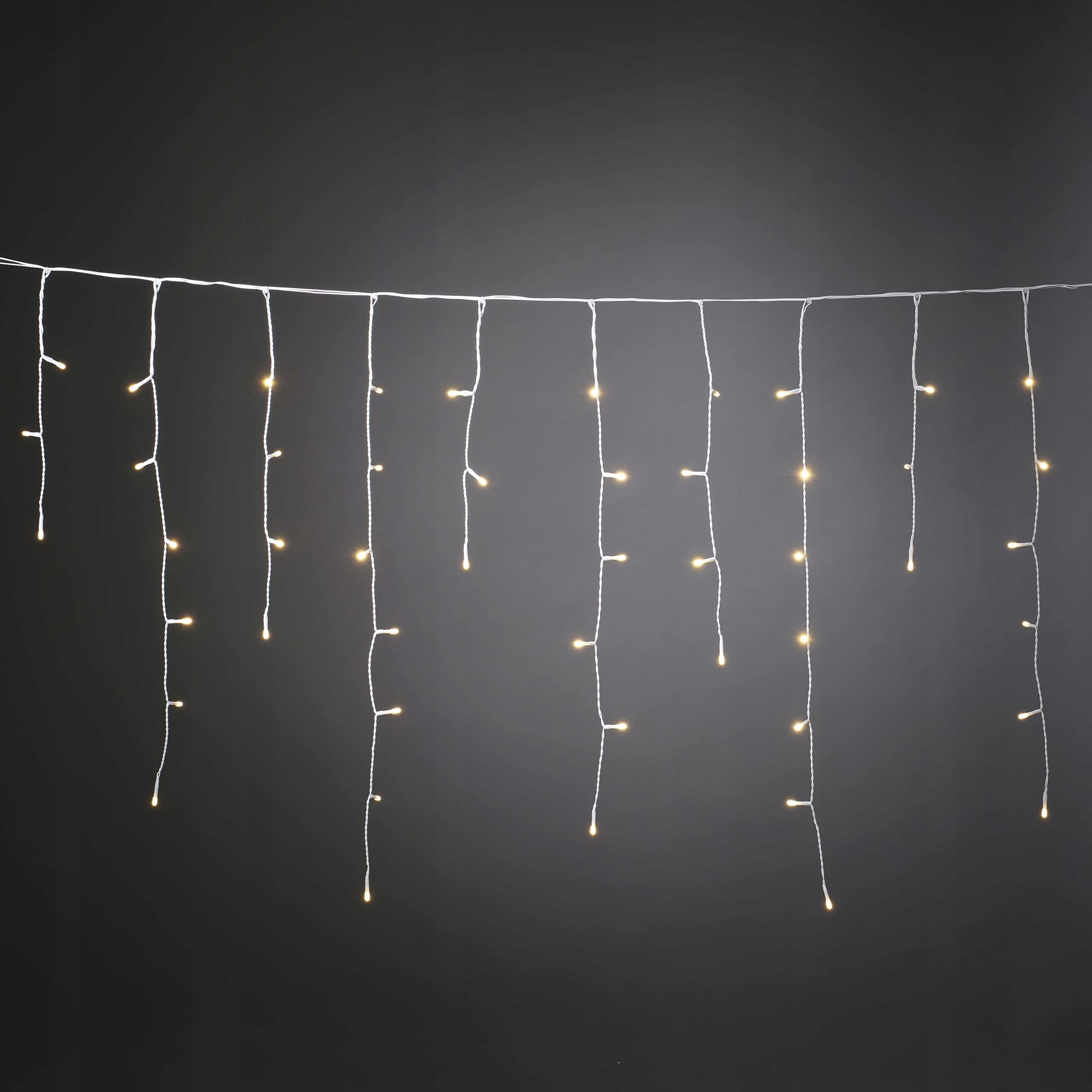 Konstsmide LED kurtyna świetlna z efektem lodowego deszczu, z czujnikiem światła oraz timerem na 6 i 9 godzin, matowa, 80 ciepłych białych diod, zasilana bateriami, do użytku na zewnątrz (IP44), biały kabel - 3739-132, biały