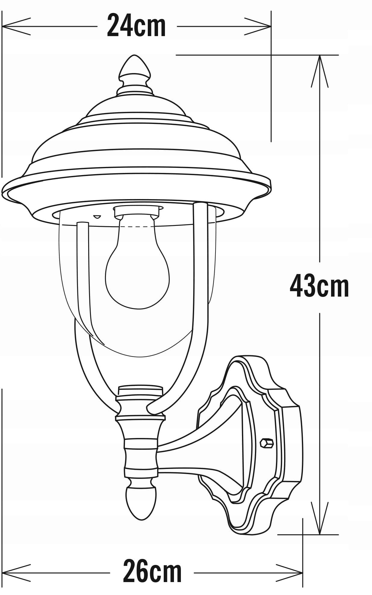 Konstsmide Parma 7223-750 Kinkiet / S: 24cm G: 26cm W: 43cm / 1x75W / IP43 / malowane aluminium / matowa czerń