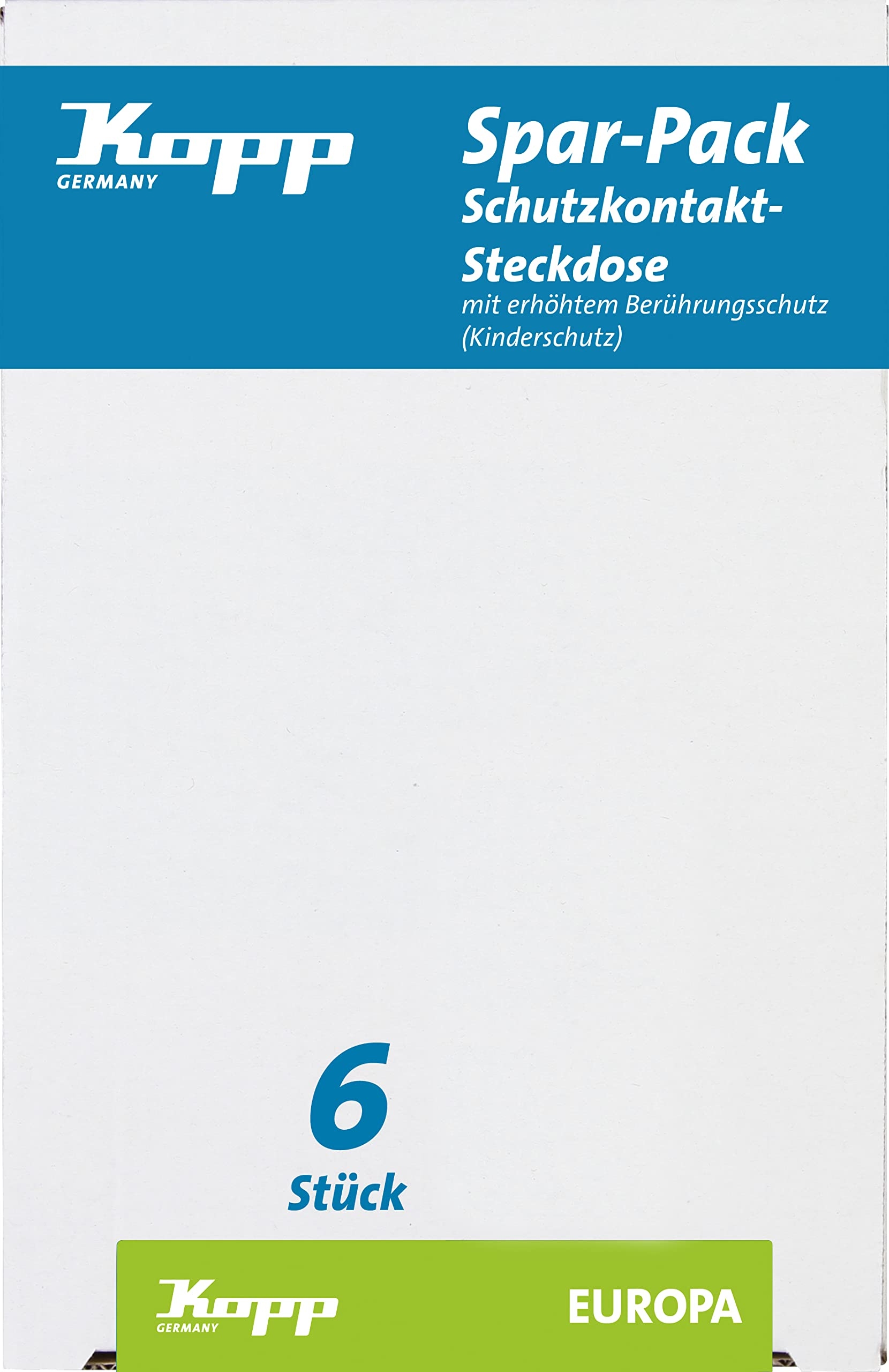 Gniazda ochronne Kopp Europa z podwyższoną ochroną dotykową, 6-pack oszczędnościowy,117901050