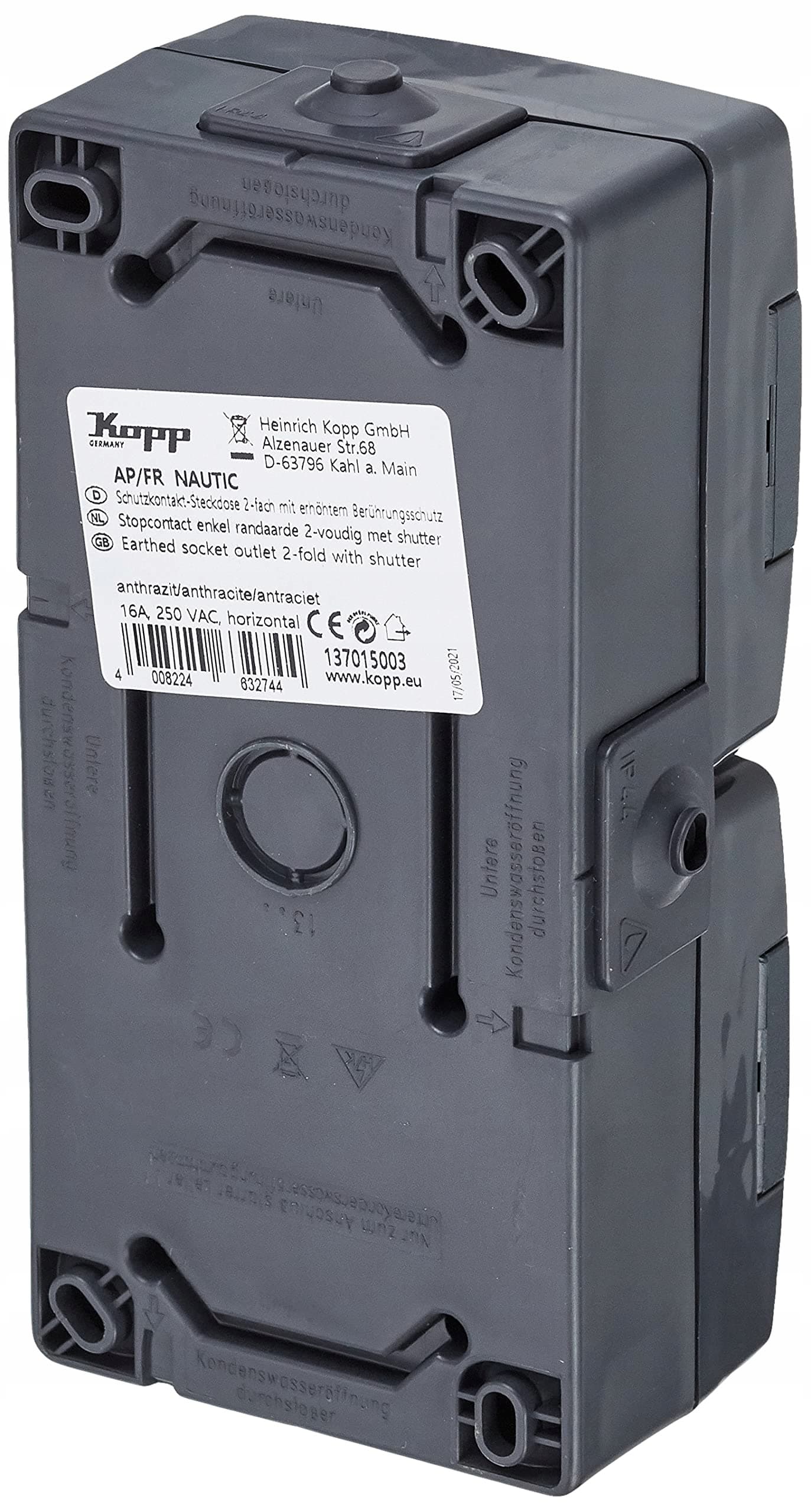 KOPP Nautic Podwójne Gniazdo Z Klapką IP44 16A 250V Anthrazit | Premium Supply
