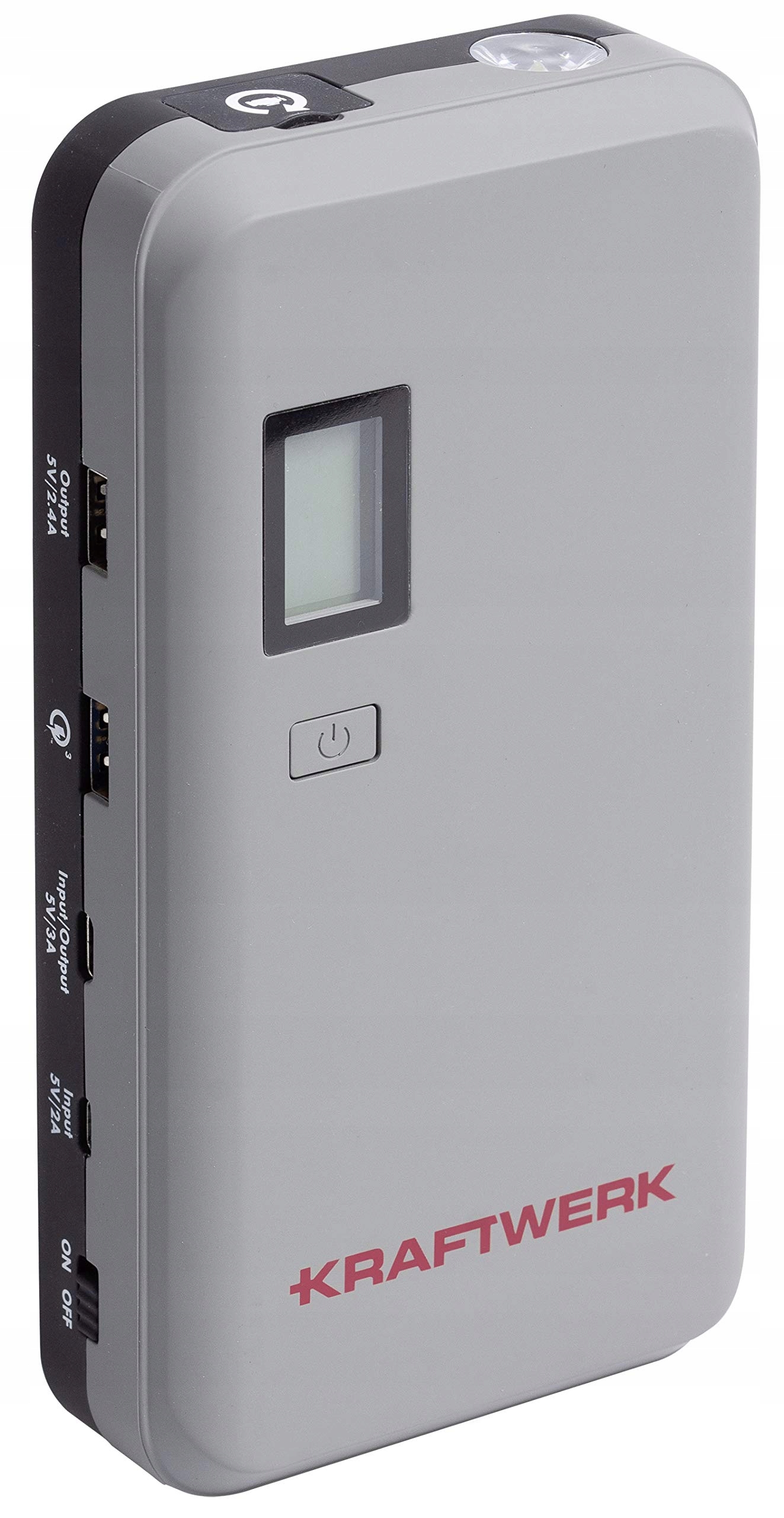 Bardzo poręczna mobilna pomoc rozruchowa dla samochodów osobowych z silnikami Diesla i benzynowymi oraz motocykli z 12 V akumulatorami rozruchowymi, a także do wielokrotnego ładowania urządzeń USB, takich jak smartfony czy tablety.