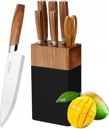 KRAINLIET Zestaw Noży Kuchennych 6 Częściowy z Blokiem i Ostrzałką