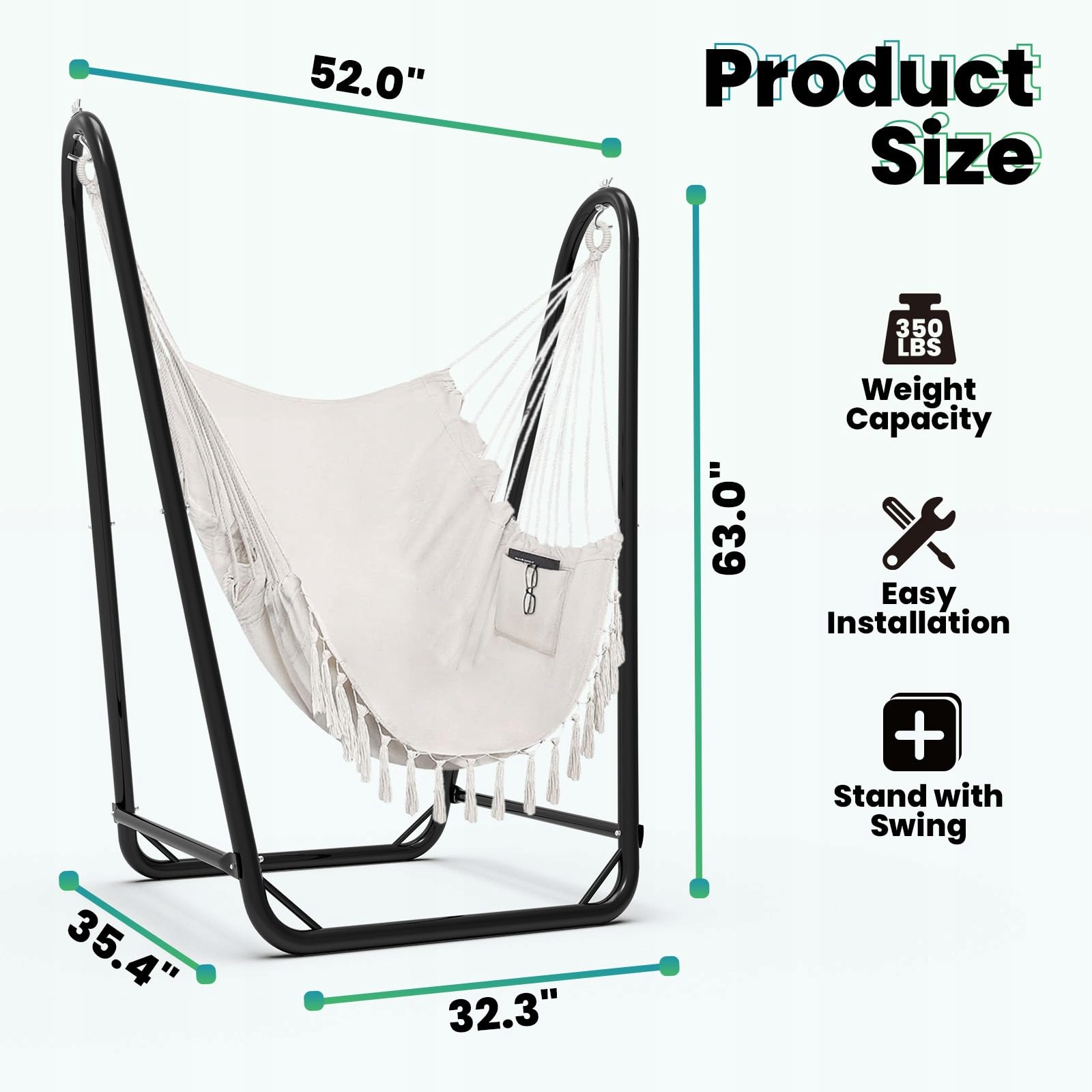 [Solidny materiał] Fotel wiszący z ramą o podwójnej rurze, wytrzymałość 350 funtów, stabilne kołysanie, powłoka proszkowa chroniąca przed rdzą, odporna na większość warunków pogodowych, idealna do użytku wewnątrz i na zewnątrz.