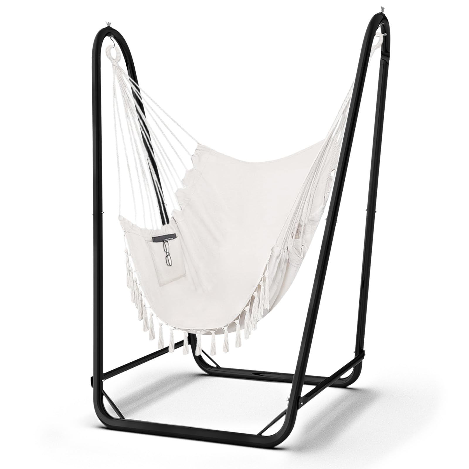 [Darmowy fotel wiszący z bawełny] Fotel wiszący z ramą jest odpowiedni dla większości foteli wiszących. Prezentujemy również fotel wiszący z naturalnej bawełny o długich włóknach, charakteryzujący się doskonałą miękkością, trwałością i komfortem. Indywidualnie zaprojektowana boczna kieszeń pomieści przedmioty takie jak telefon, książka i iPad, co jest bardzo praktyczne i zapewnia przyjemniejsze warunki do relaksu i czytania.