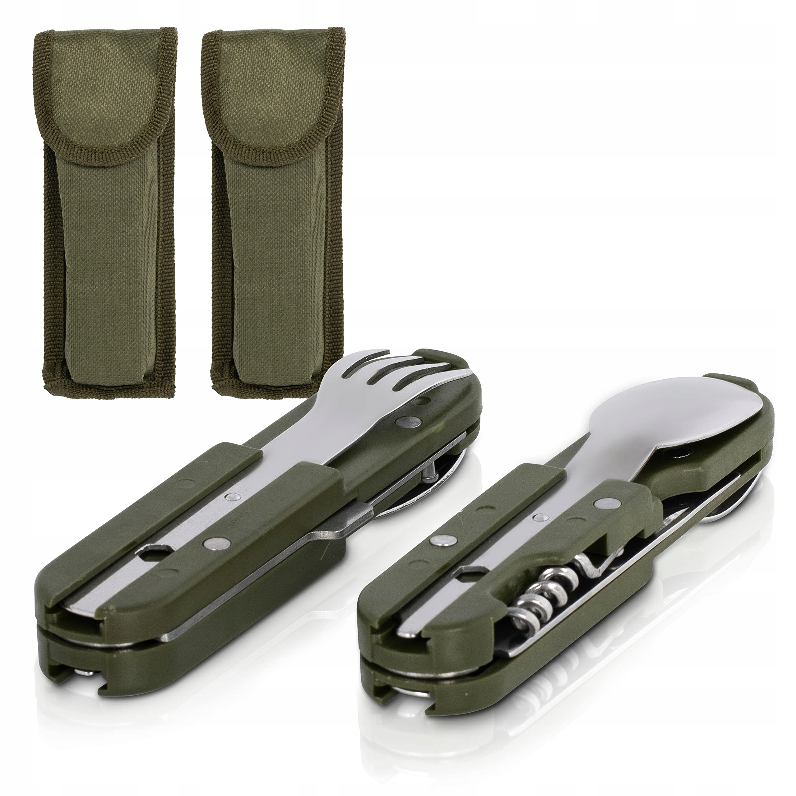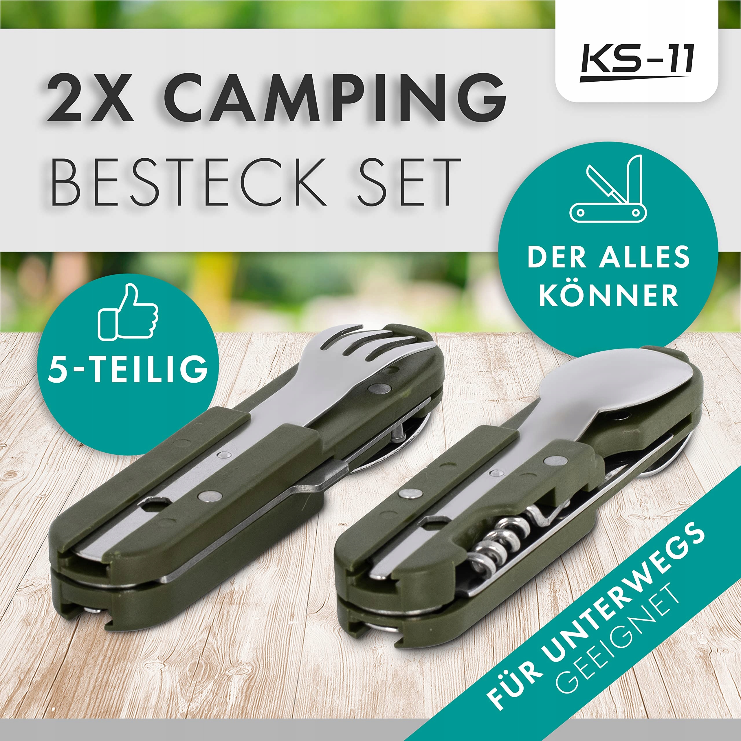 KS-11 2 sztuki Outdoor Bundeswehr sztućce ze stali nierdzewnej zestaw sztućców kempingowych 6-częściowy zestaw sztućców kempingowych, zielono-srebrny