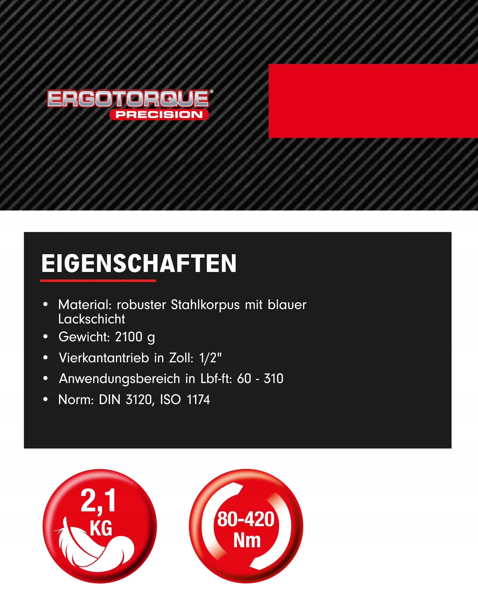 Klucze dynamometryczne KS Tools 1/2 cala z pokrętłem ERGOTORQUEprecision 516.1582 I 80-420 Nm I Z podwójną skalą w Nm i lbf•ft I Precyzyjne klucze do śrub