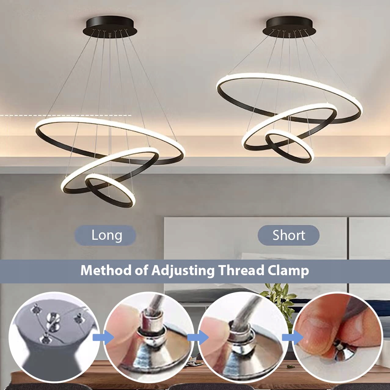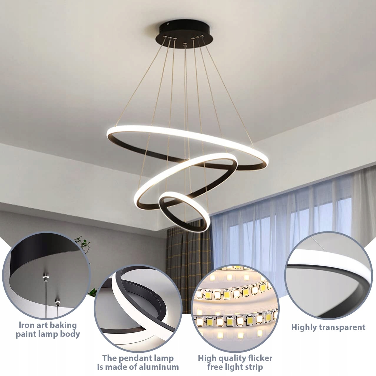 【3 pierścienie biała lampa wisząca salon】 Średnica 3 pierścieni: 50 cm + 35 cm + 20 cm. Moc: 45 W, lumeny: 3800 lm. Napięcie: 220 V-240 V, kolor: biały, materiał: aluminium + akryl. Nowoczesna lampa wisząca LED do stołu jadalnego jest piękna i nastrojowa, jasna i miękka, bez zakłóceń radiowych, chroni oczy i mózg.