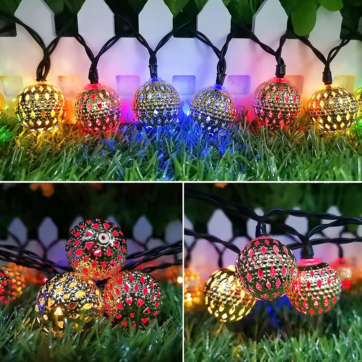 �[50 LED Solar Globe Lichterketten]7M długa zewnętrzna solarna lichterkette z 50 2,5cm złotymi marokańskimi kulami żarówkowymi z kątem widzenia 360 stopni, który świeci we wszystkich kierunkach, tworzy przytulną i świąteczną atmosferę dla Ciebie i Twojej rodziny.