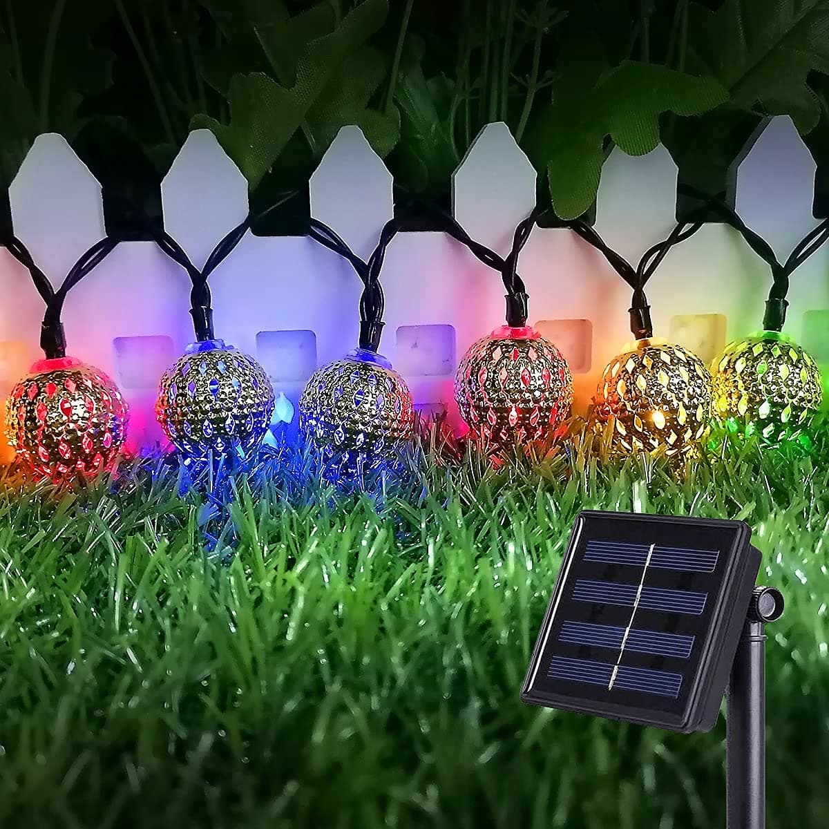 Łańcuch świetlny LED, 7 m, do użytku na zewnątrz, marokańskie bombki do użytku na zewnątrz i wewnątrz, 50 diod LED, 8 trybów świecenia, wodoszczelny, do dekoracji ogrodu, na balkon, Boże Narodzenie, [Klasa energetyczna A]