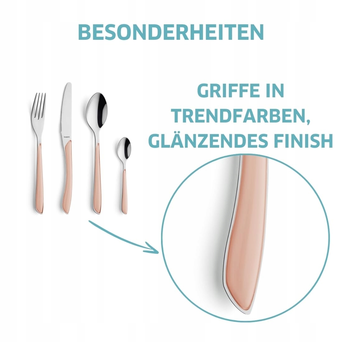 ŁATWA PIELĘGNACJA. Sztućce z plastikowymi uchwytami nadają się do mycia w zmywarce. Widelec, łyżka obiadowa, łyżeczka do herbaty i nóż można więc łatwo wyczyścić.