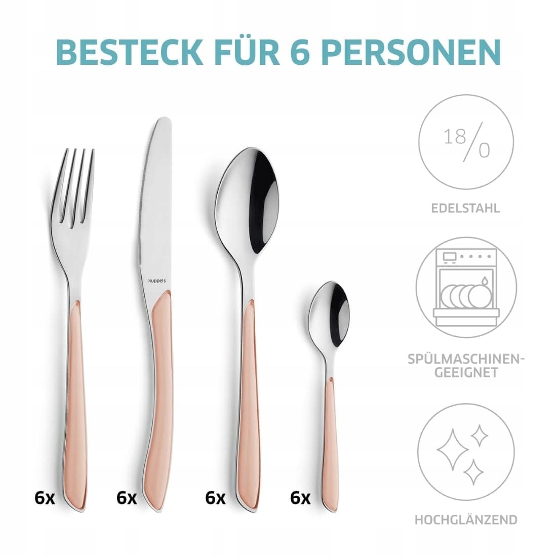 KUPPELS Zestaw Sztućców 24 Częściowy Stal Nierdzewna Dla 6 Osób Apricot | Premium Supply