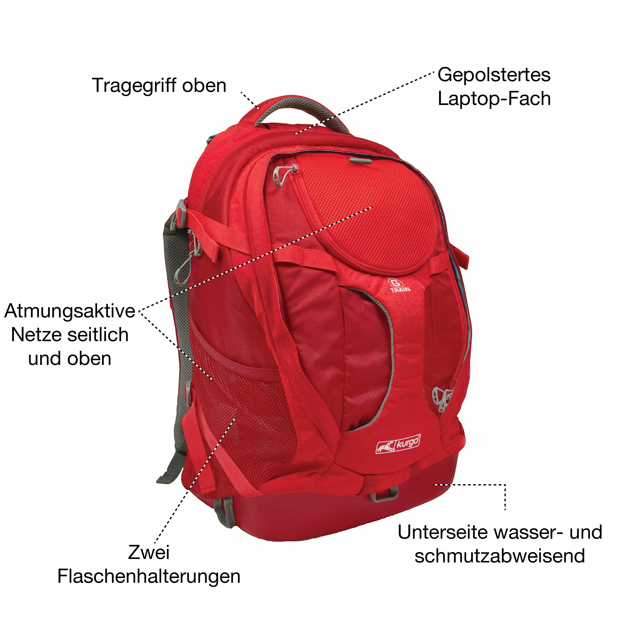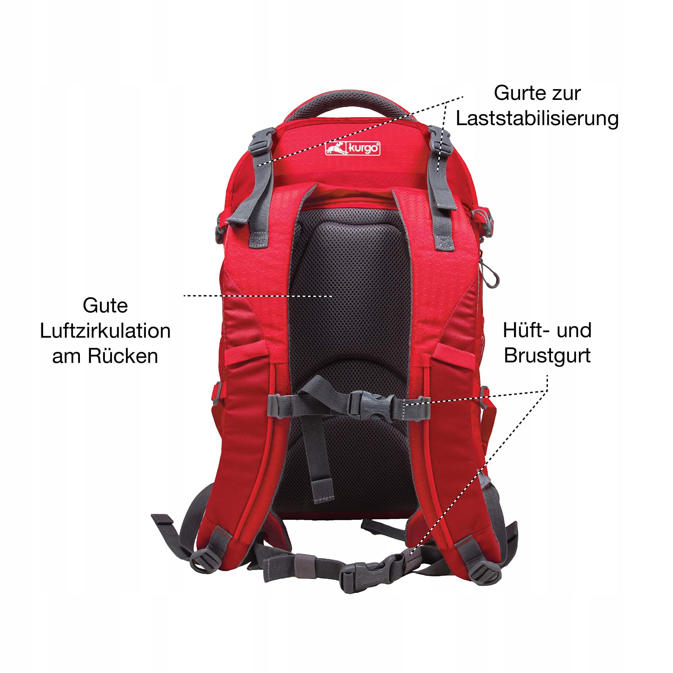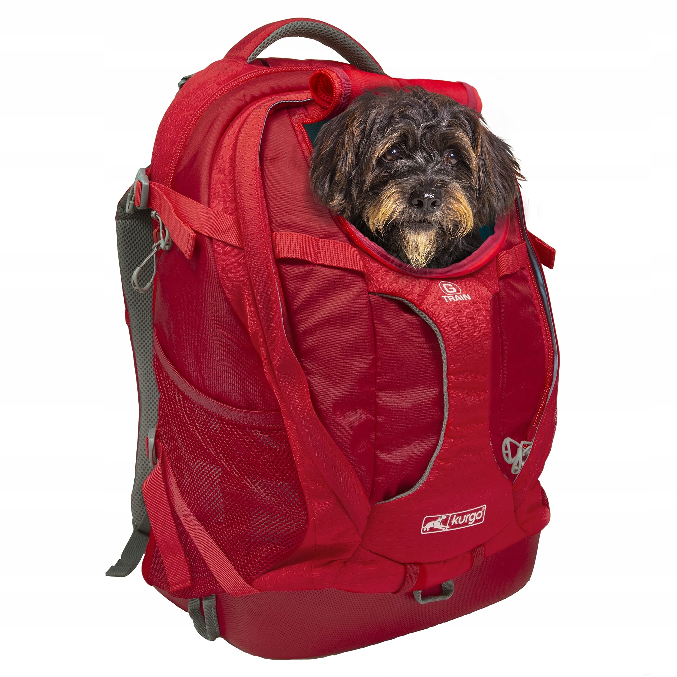 Kurgo G-Train Plecak dla psa, Z wbudowaną kieszenią na zwierzęta, Wodoodporny spód, Dla zwierząt do 11 kg, Czerwony, 36x24x52 cm (1 sztuka)