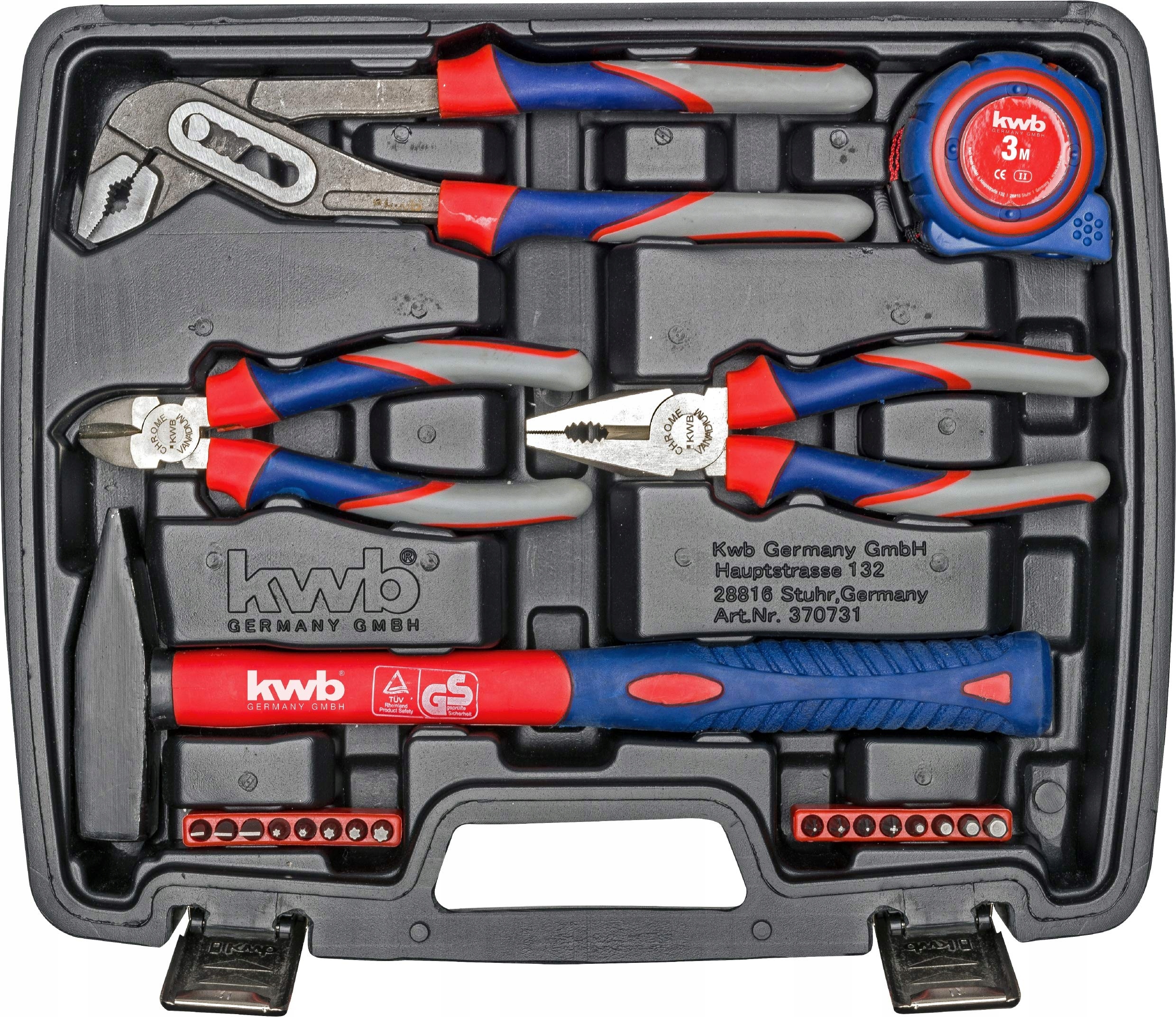 kwb Zestaw narzędziowy inkl. wkrętaki - 42-elementowy, wypełniony, solidny i wysokiej jakości - Idealny do domu i garażu - GS-zatwierdzony - Praktyczna walizka plastikowa - Czerwony, Niebieski, Szary