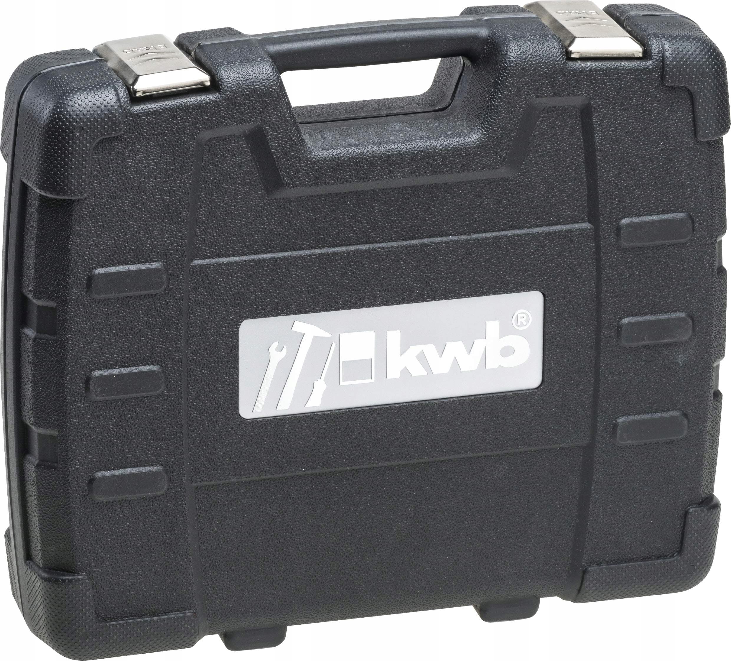 WYTRZYMAŁY I PRAKTYCZNY: Wykonany z odpornego na uderzenia twardego plastiku w kolorze czarnym z metalowym logo KwB. Składany i odporny na uderzenia do wysokości upadku 1 metra