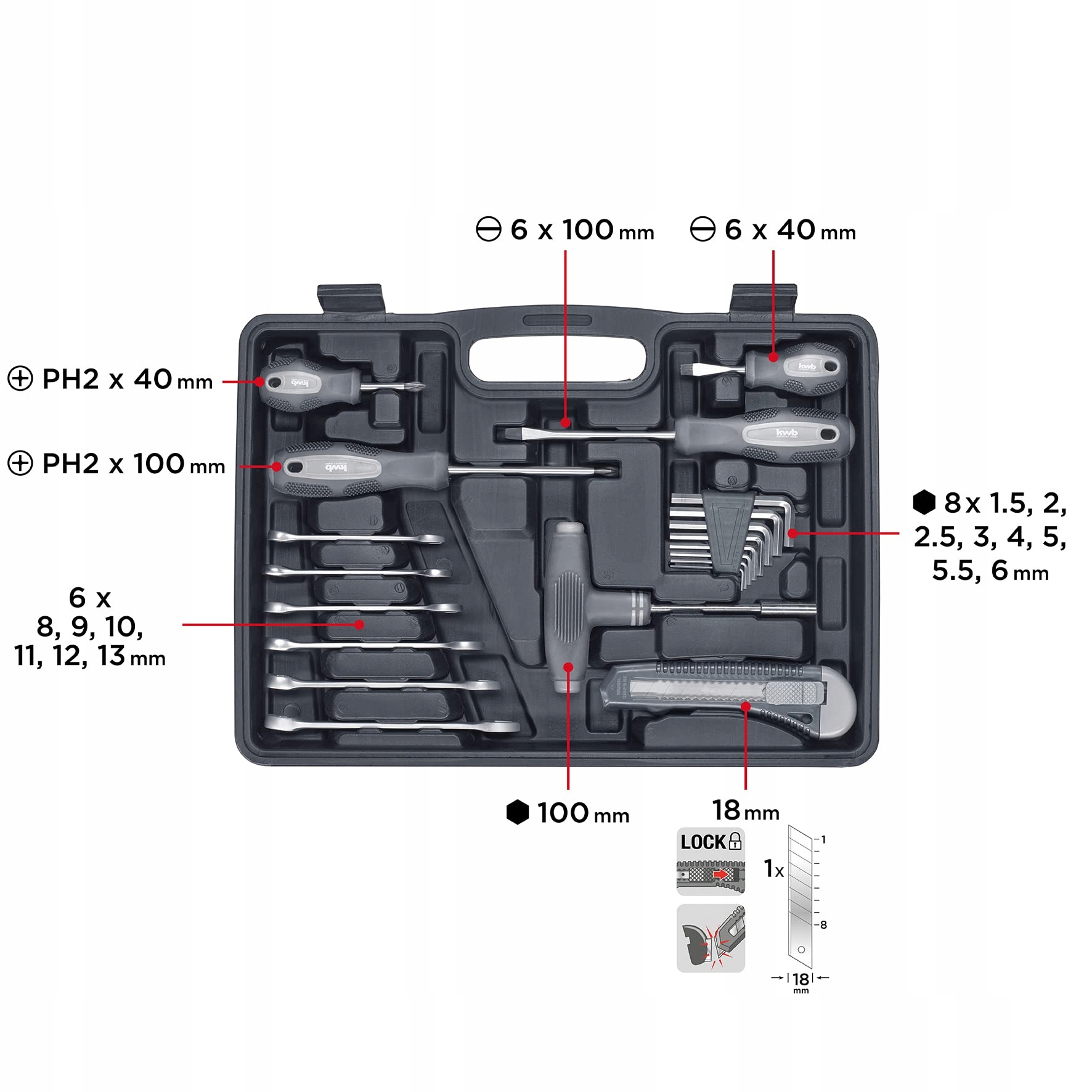 KWB Zestaw Narzędziowy Z Wytrzymałego Tworzywa Sztucznego 63 Elementy | Premium Supply