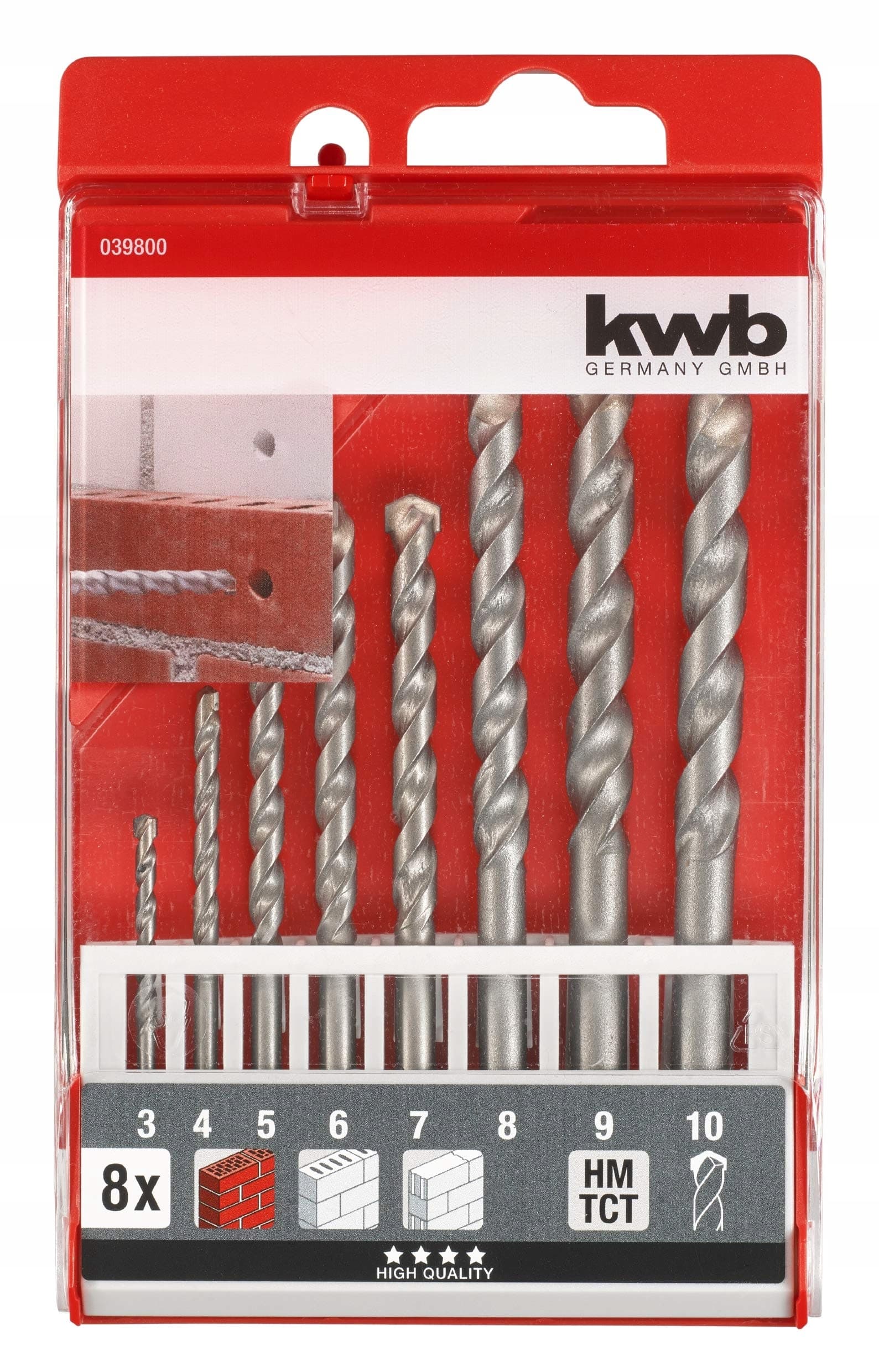 Z PUDŁEM DO PRZECHOWYWANIA: W plastikowym pudełku wszystkie wiertła do murów można przechowywać w sposób przejrzysty, przy czym należy zwrócić uwagę na płaskie ułożenie, aby uniknąć wypadania wierteł. (kwb Art. Nr. 039800)