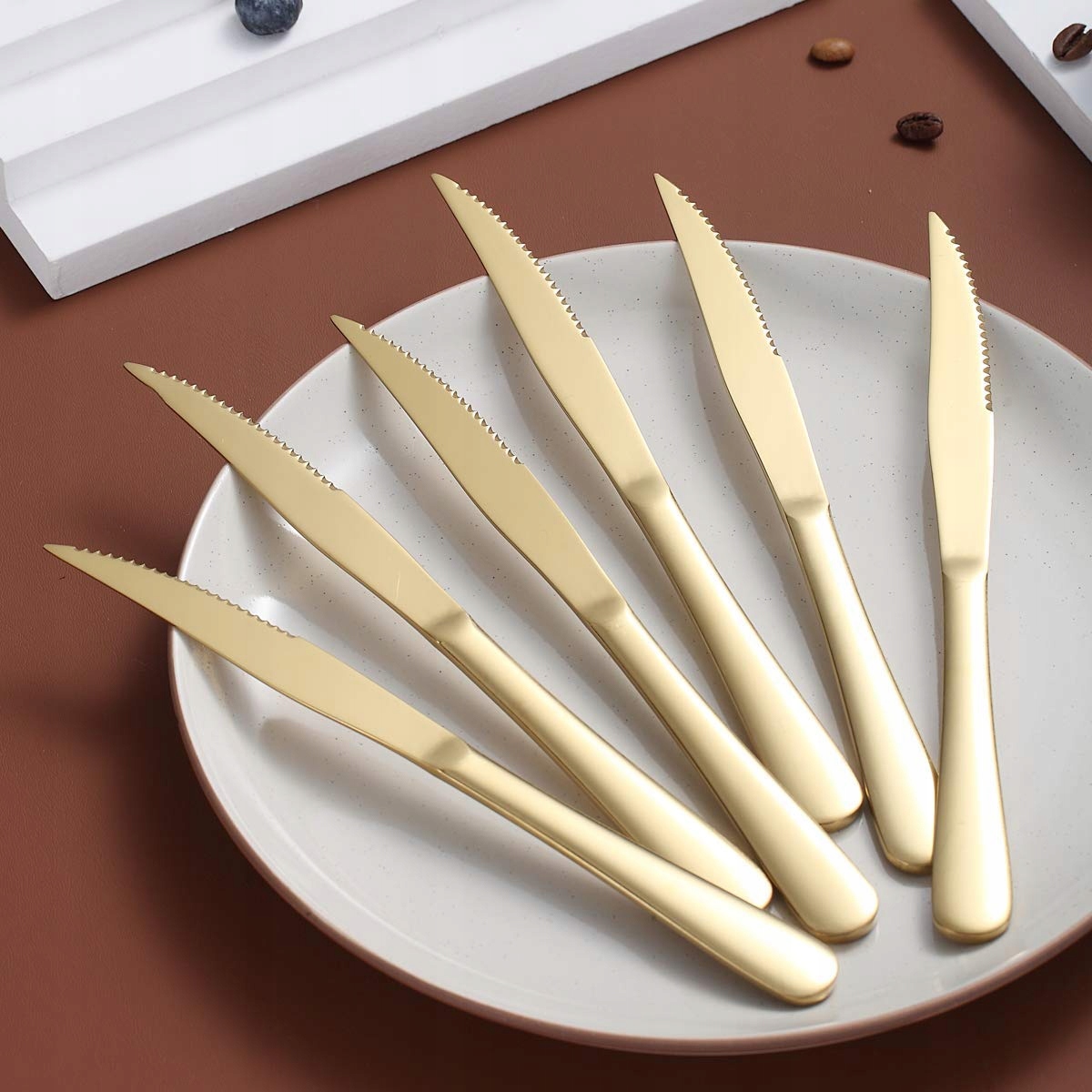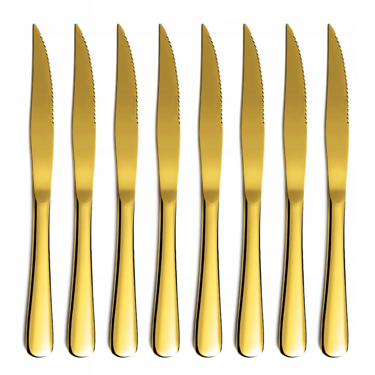 KYRTAON Zestaw Złotych Noży Stekowych Ząbkowane Stal Nierdzewna 8 Sztuk