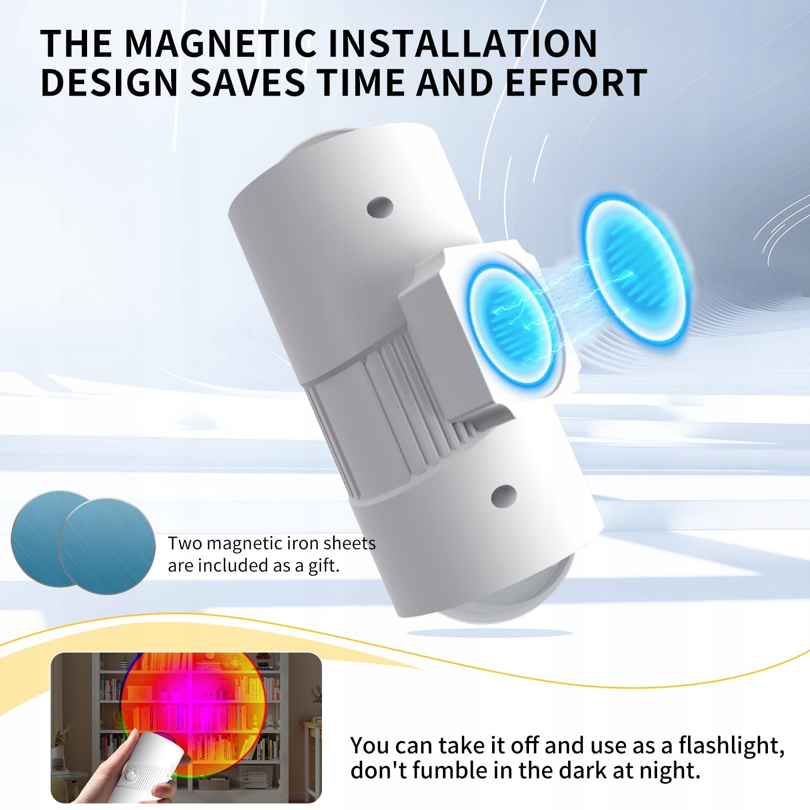 【Łatwa instalacja】Lampa zewnętrzna z czujnikiem ruchu z magnetycznym uchwytem (w zestawie 2 metalowe płytki) oraz mocną taśmą klejącą (do gładkich powierzchni). Montaż bez narzędzi - przylega do każdej powierzchni metalowej.