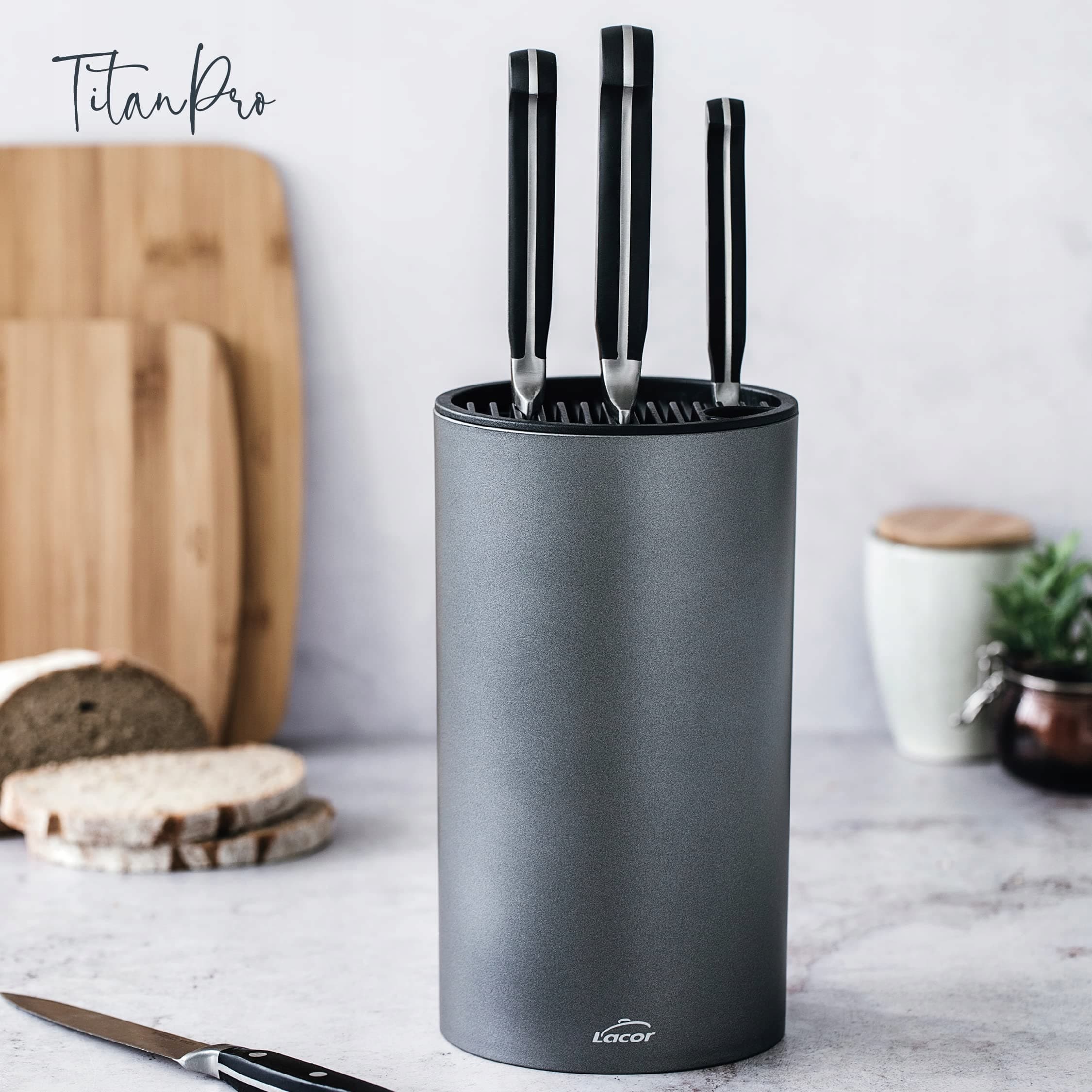 LACOR - 39038 - TitanPro blok na noże, uniwersalny blok na noże, kolor metaliczny, Ø13cm, wysokość 23cm, nadaje się do mycia w zmywarce.