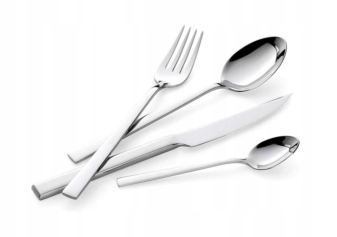 CECHY: Zestaw sztućców Lagostina z wykończeniem na wysoki połysk i grubością 3,5 mm; nadaje się do mycia w zmywarce