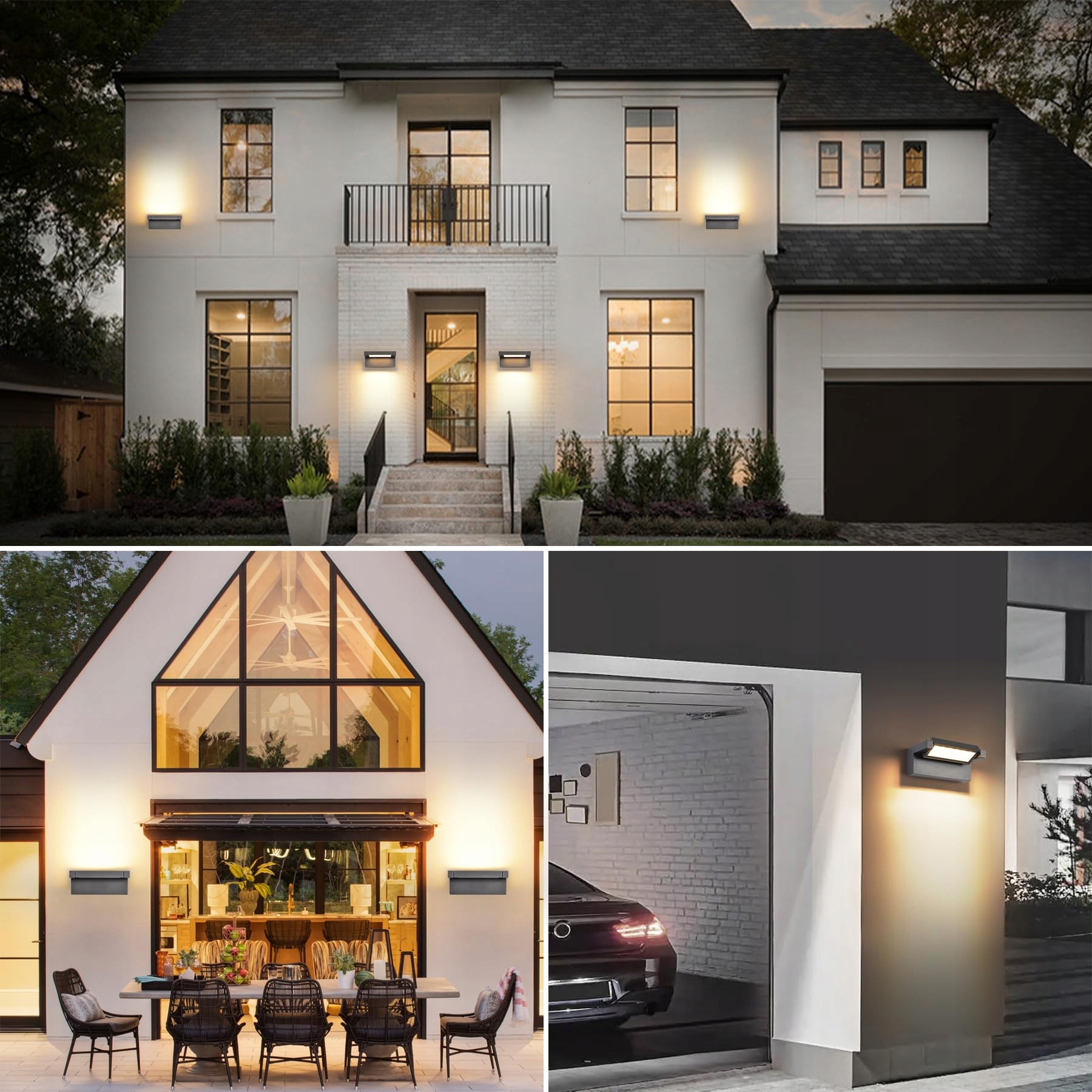 [Obrotowy panel LED] Panel LED kinkietu zewnętrznego można obracać pionowo o 350°. Możesz dostosować kinkiet zewnętrzny w górę i w dół lub do przodu i do tyłu w zależności od potrzeb, oferując piękne efekty świetlne do oświetlenia lub dekoracji.