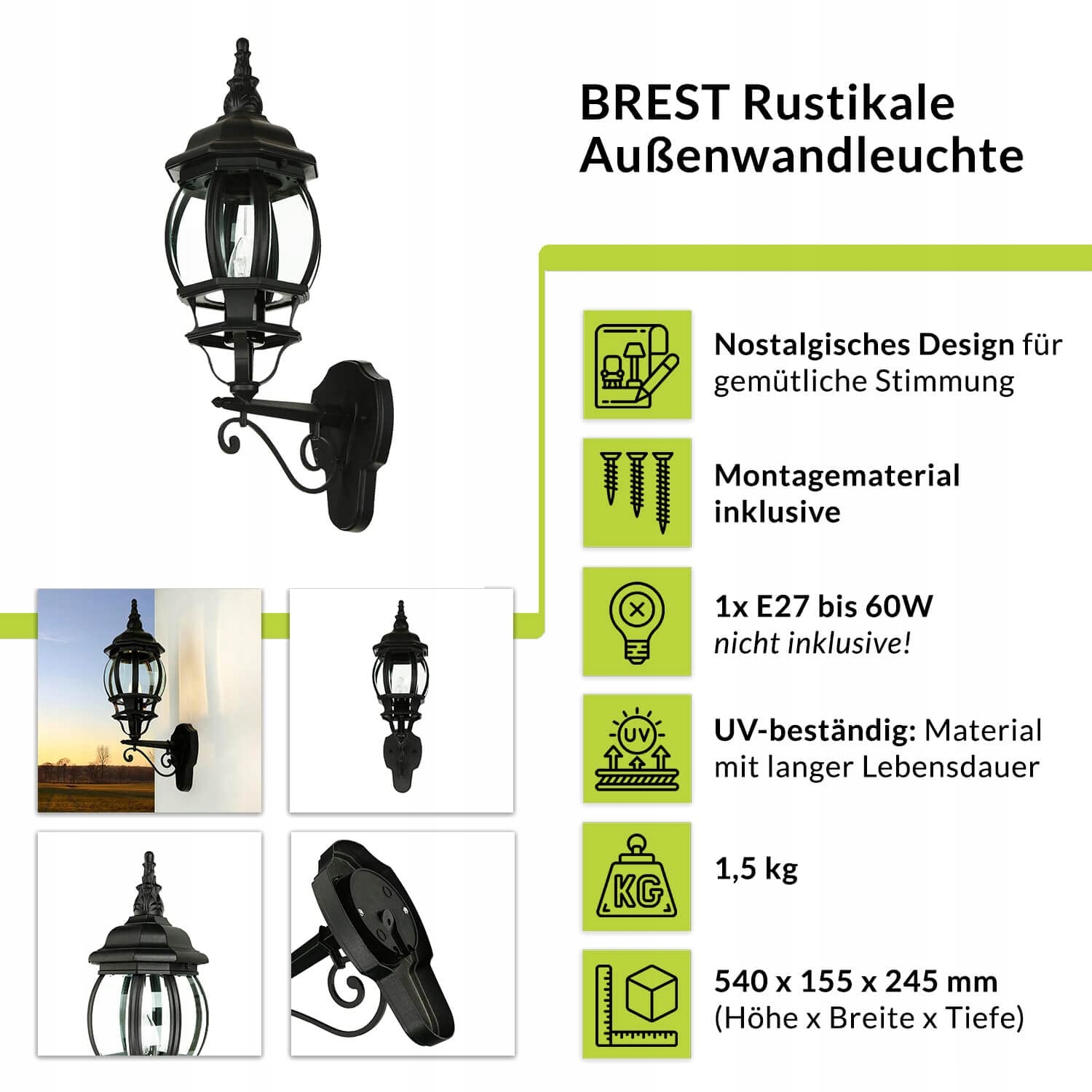 DESIGN: Rustykalna lampa ścienna w stylu latarni nadaje Twojemu otoczeniu nostalgiczny urok. Dzięki dekoracyjnym ornamentom jest prawdziwą ozdobą elewacji domu.