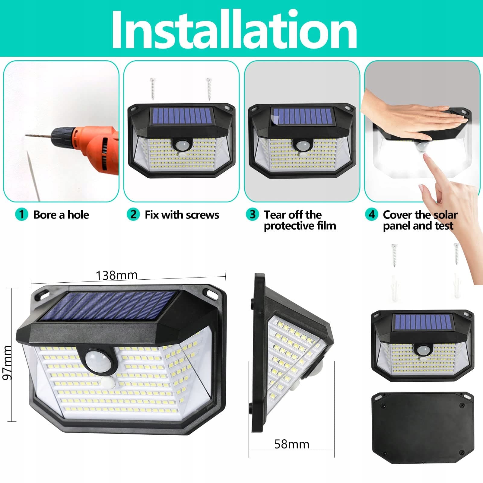 Lampy Solarne Z Czujnikiem Ruchu IP65 Wodoodporne LED | Premium Supply