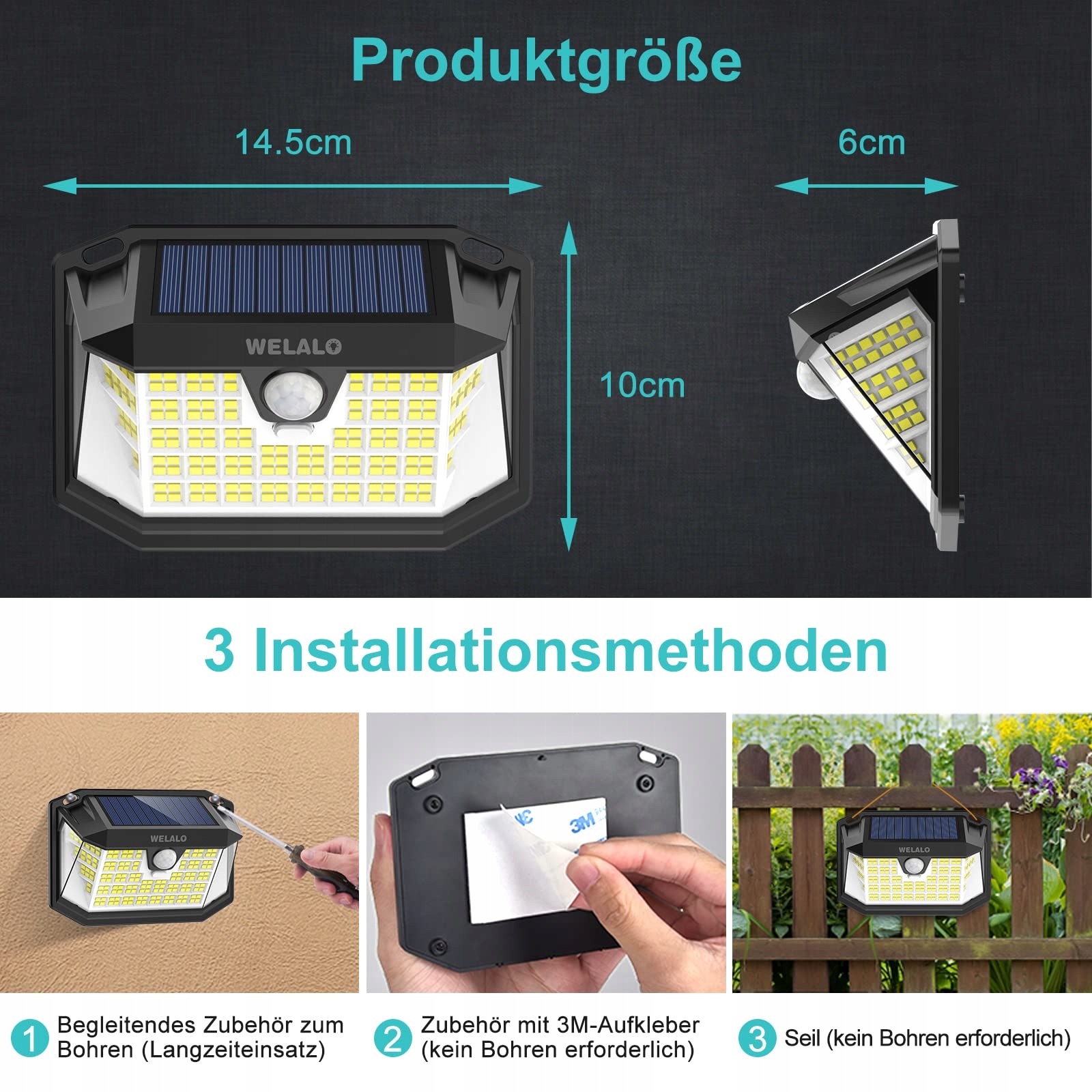 [Łatwe do zainstalowania lampy solarne do ogrodu] 3 opcje montażu, brak kabli lub zasilania, brak konieczności okablowania. Zawieś je na linie lub użyj dołączonych śrub/naklejek 3M i zamontuj je w idealnym miejscu w pełnym świetle słonecznym. Idealna wysokość montażu to około 1,7 do 2 metrów. Zasilane energią słoneczną, zgodne z ideą ochrony środowiska, oszczędzają energię i pieniądze!