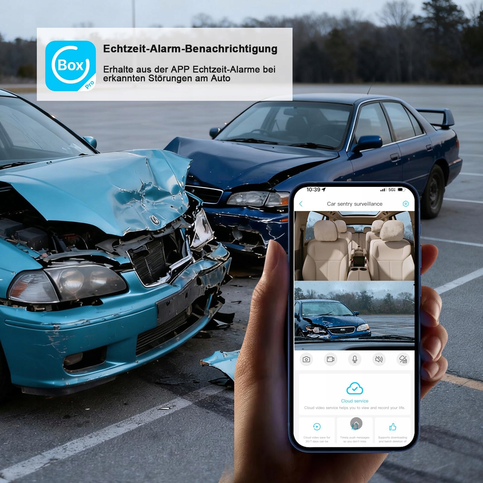 【Automatyczne zabezpieczenie w chmurze】Kamera samochodowa 4G automatycznie zapisuje filmy z wydarzeń w Twojej osobistej, zaszyfrowanej chmurze. Dzięki temu filmy pozostają bezpieczne nawet w przypadku uszkodzenia lub kradzieży kamery samochodowej. Otrzymujesz natychmiastowe powiadomienia i łatwy dostęp do ważnych nagrań bez konieczności żmudnego przeszukiwania karty pamięci. (W tym bezpłatny 30-dniowy okres próbny pamięci w chmurze.)