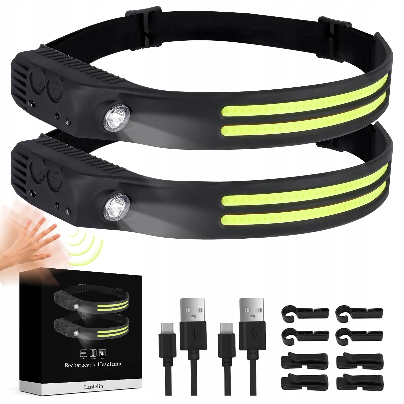 LANLELIN Latarka Czołowa LED Zestaw 2 Sztuki 230° 1500mAh IPX4 Sensor | Premium Supply