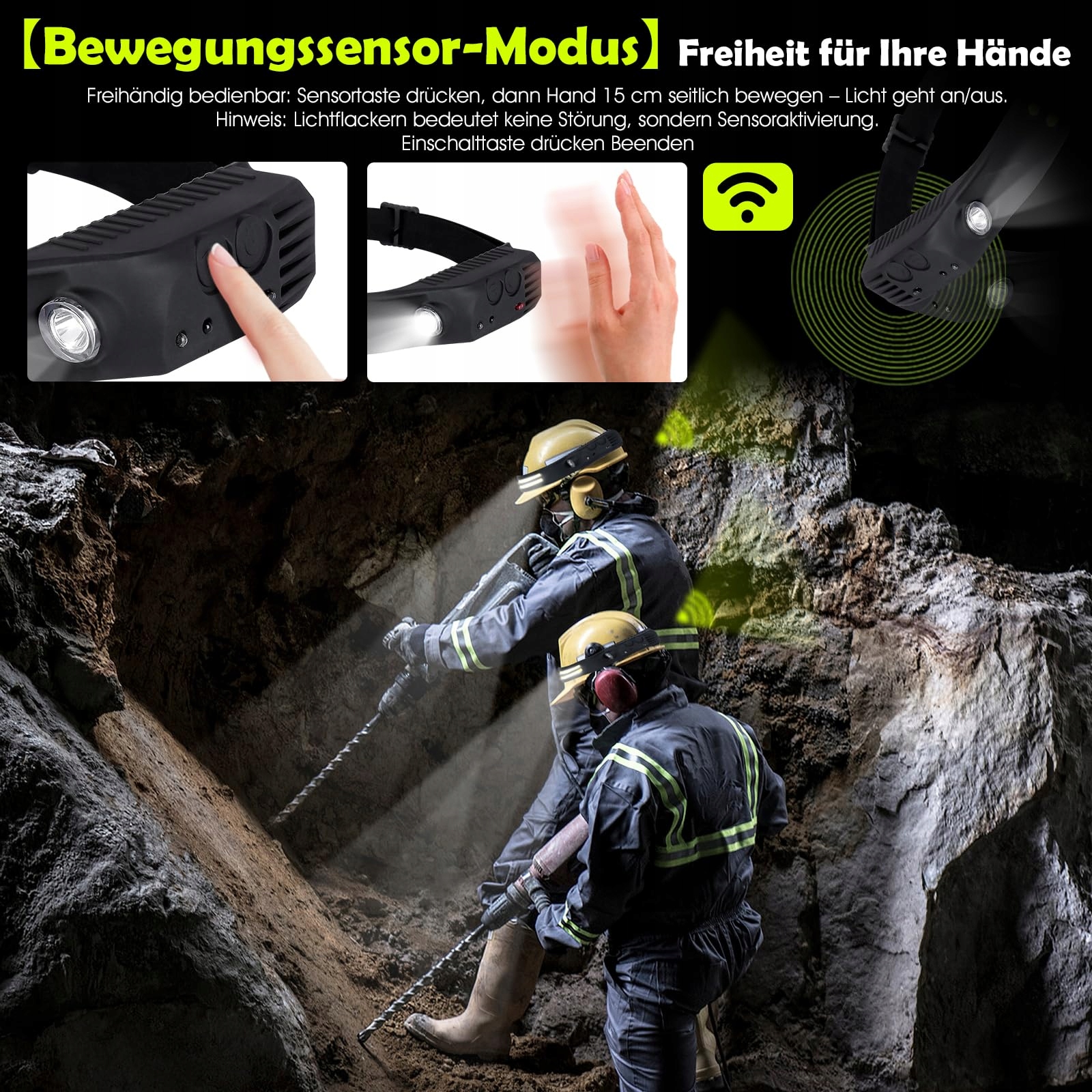【230° szeroki strumień & czujnik ruchu】W przeciwieństwie do innych reflektorów bocznych z okularami, nasza latarka ma 230° szeroki strumień skierowany do przodu, co znacznie redukuje oślepianie i zapewnia lepszą widoczność. Te latarki czołowe są również wyposażone w funkcję czujnika. Możesz łatwo przełączać tryby światła, machając ręką w obszarze działania czujnika, co jest bardzo wygodne.