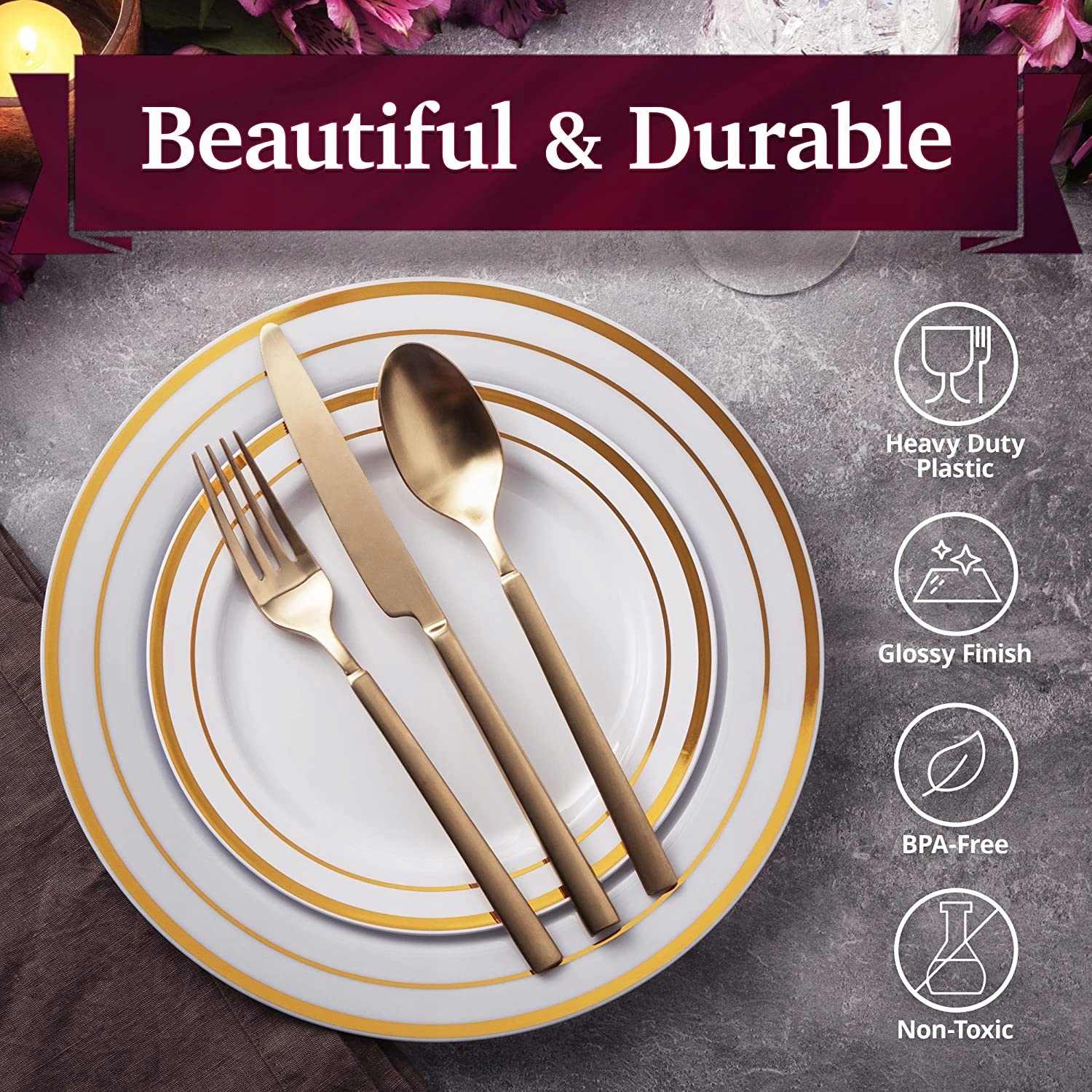[Elegancki design] Złote obramowania nadają imprezie elegancki, nowoczesny charakter, aby zorganizować stylowe przyjęcie i zaimponować przyjaciołom oraz rodzinie luksusowym złotym zestawem naczyń