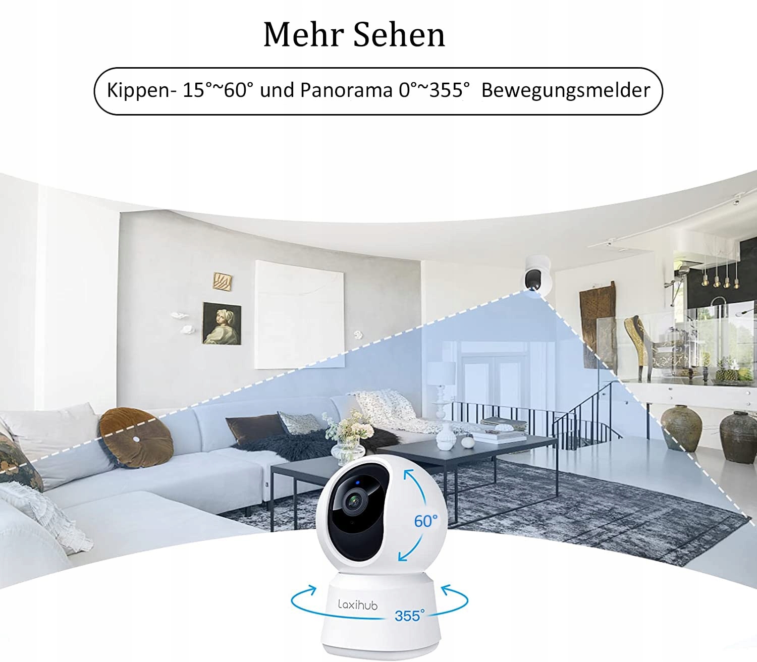 LAXIHUB 360°CAbdeckung Pan Tilt Domowe Kamery Bezpieczeństwa 2 szt., 1080p Full HD Kamera wewnętrzna z noktowizorem i dwukierunkowym audio, inteligentny monitor dla niemowląt, kamera dla zwierząt z aplikacją telefoniczną