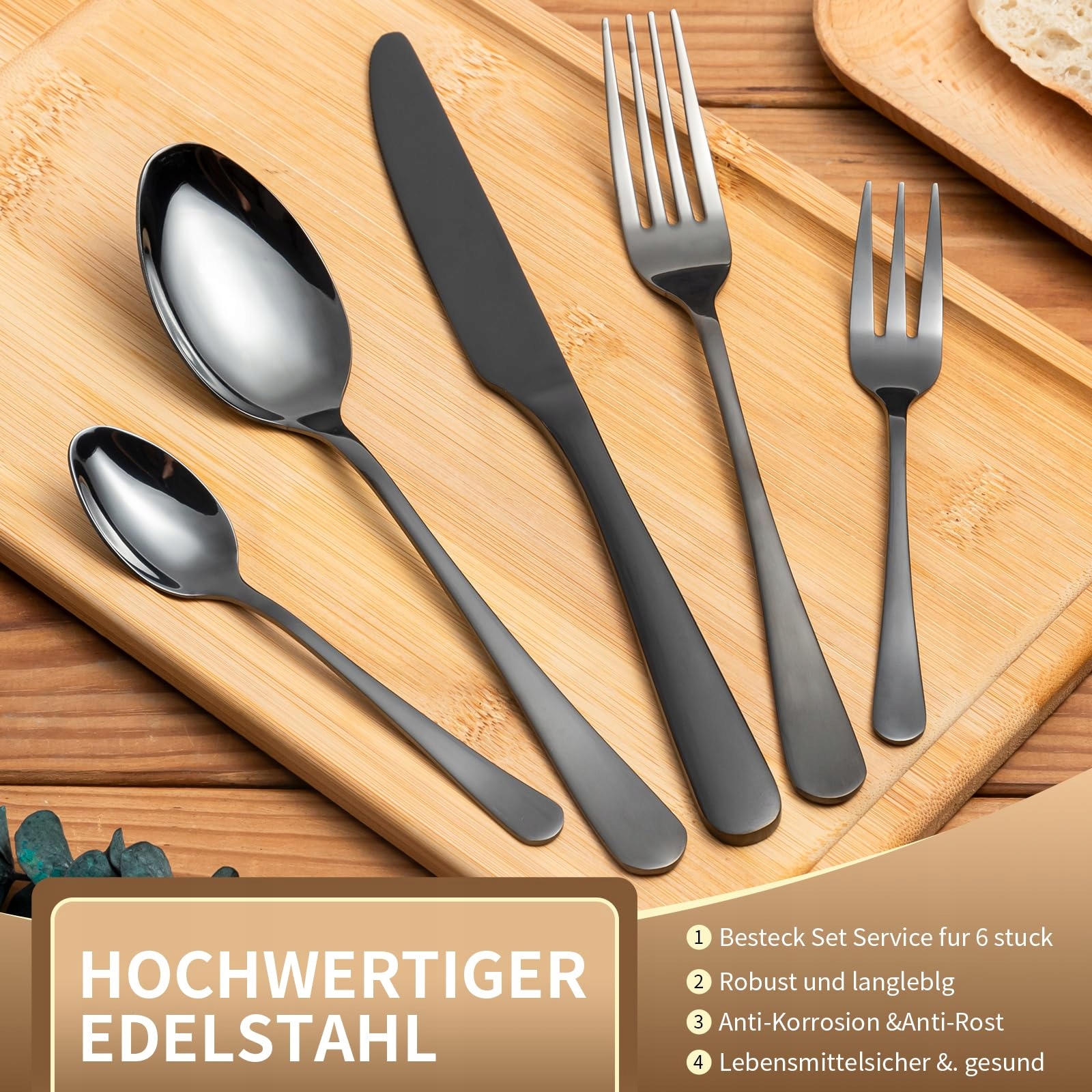 LAZAHOME Zestaw Sztućców Stal Nierdzewna 30 Części Czarny Na 6 Osób