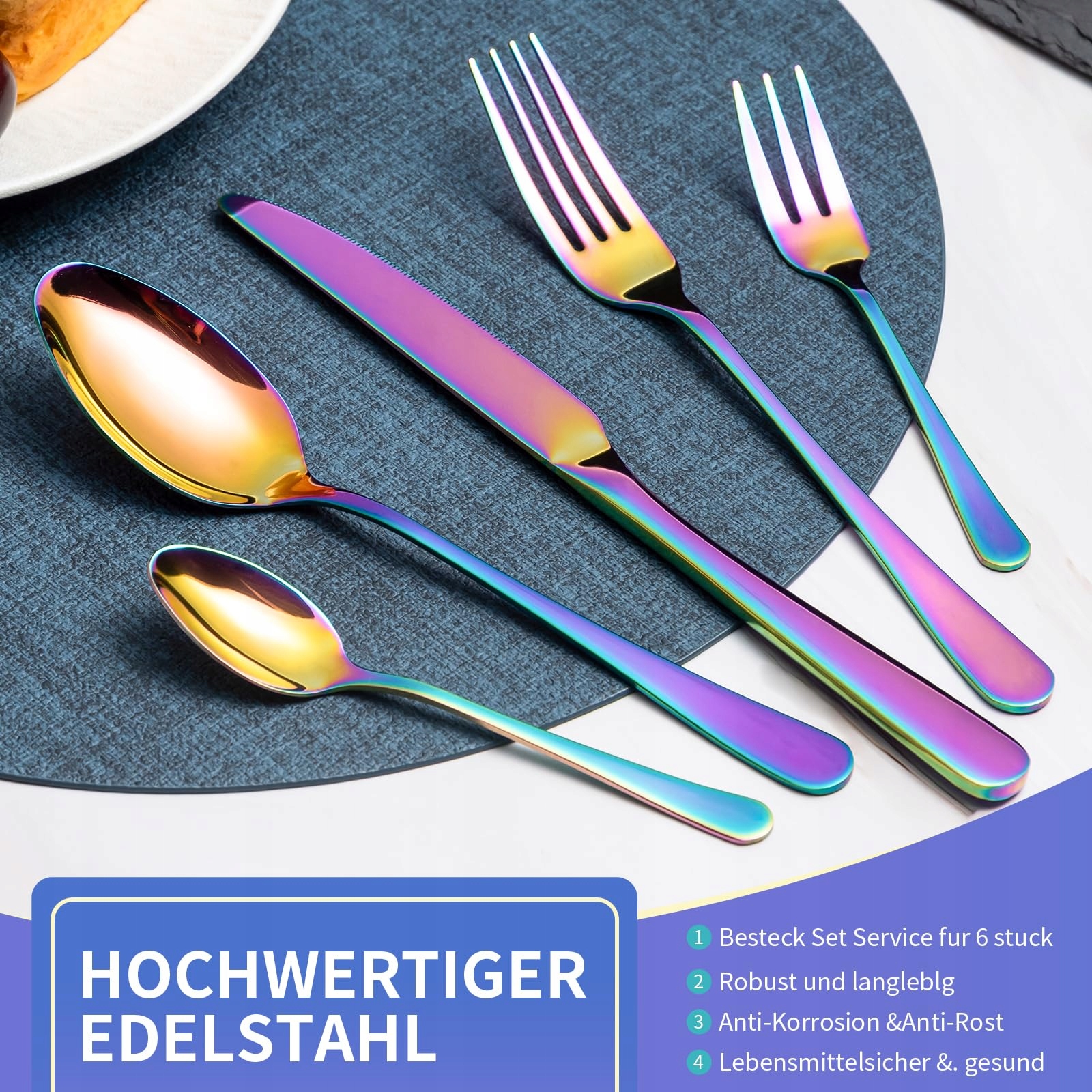 LAZAHOME Zestaw Sztućców Stal Nierdzewna 30 Części Tęczowe Dla 6 Osób | Premium Supply